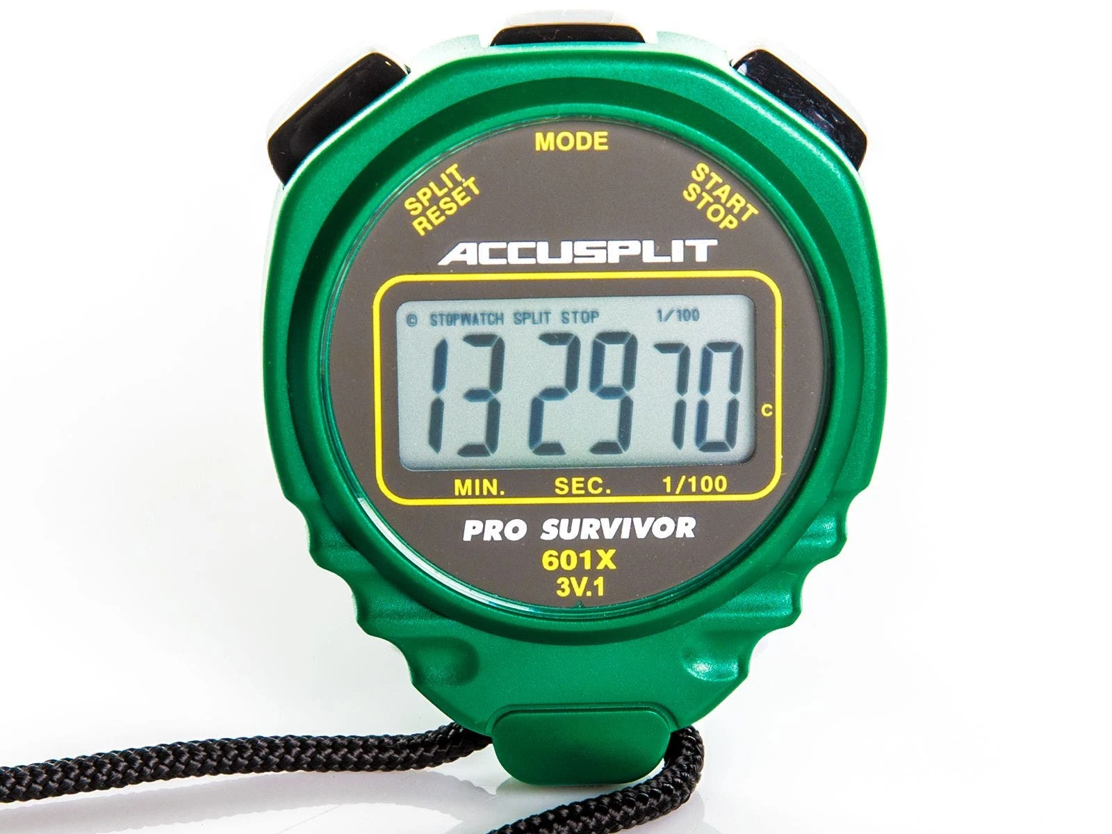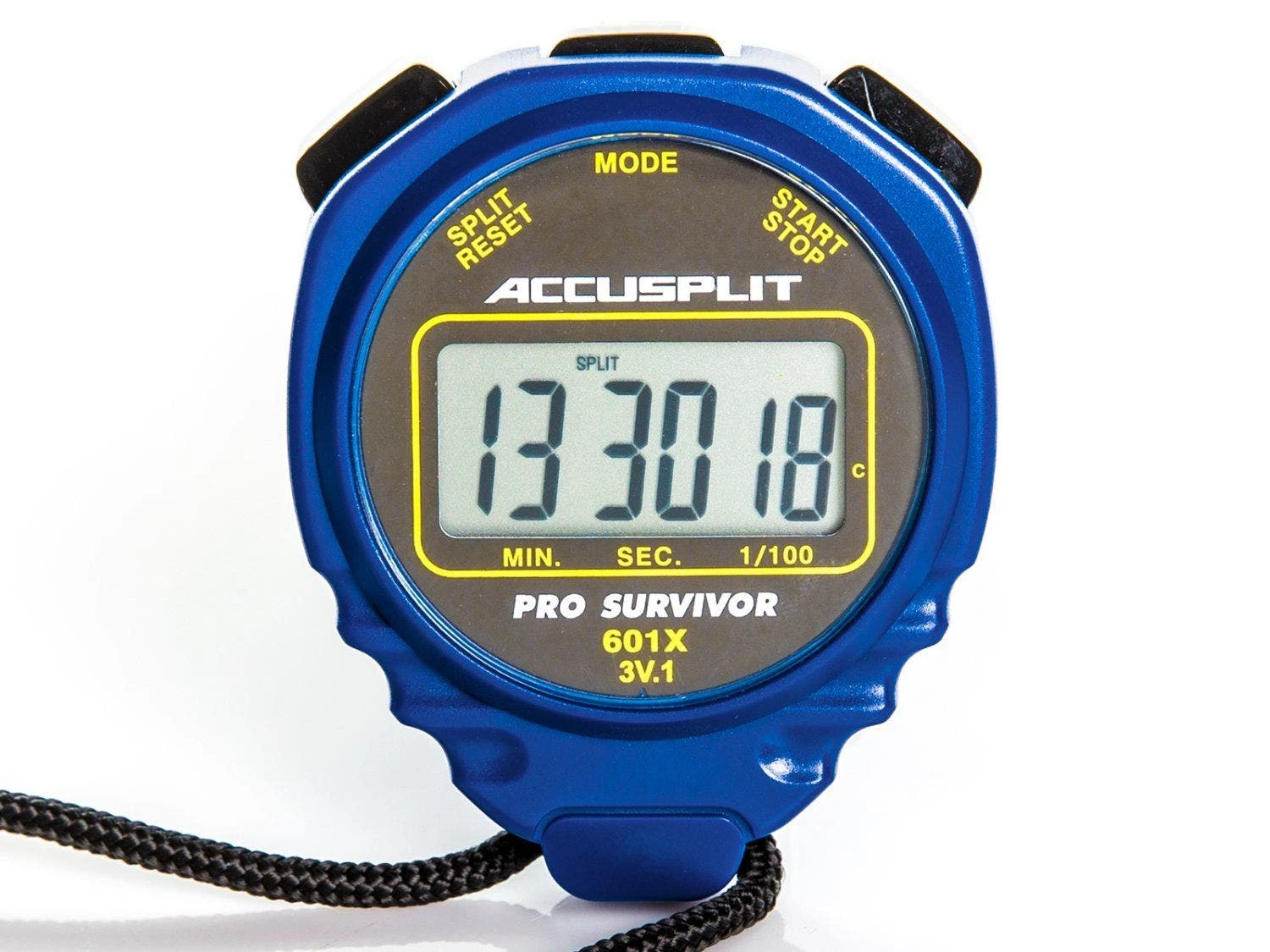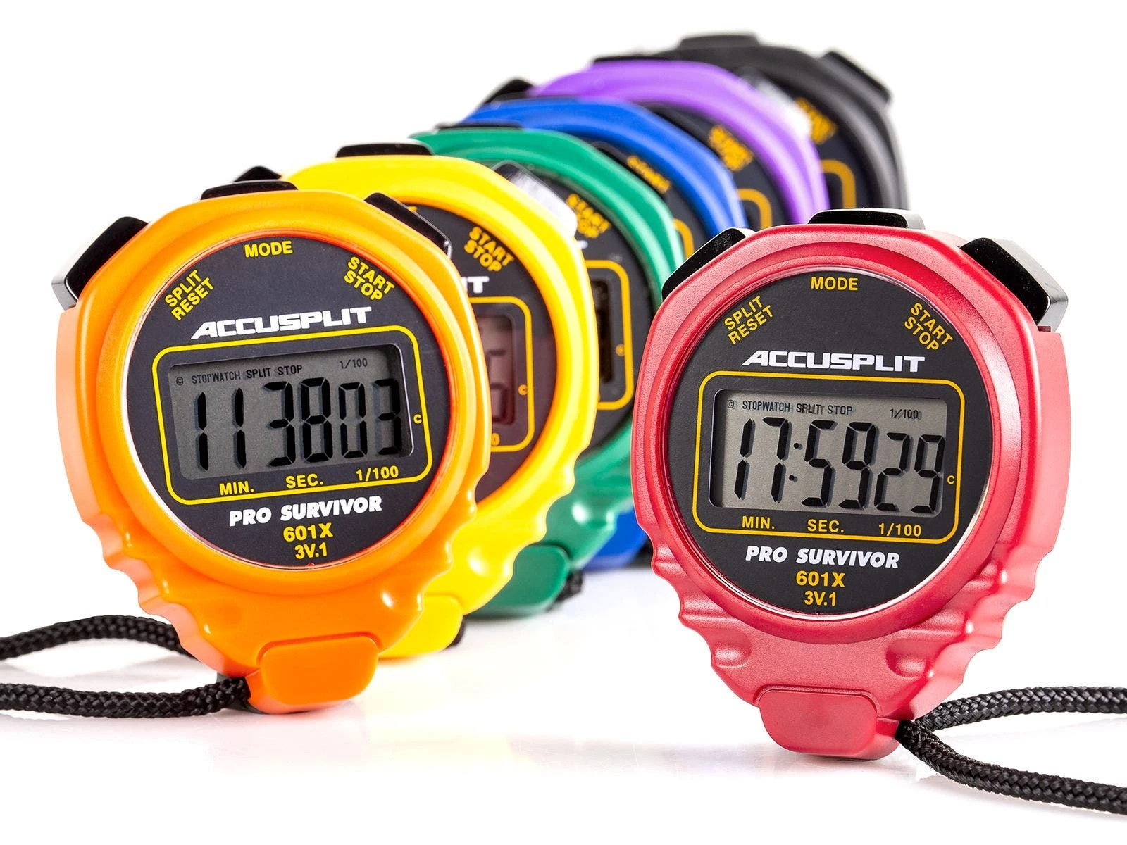 Housed in Accusplit’s exclusive “X” case, these stopwatches for PE are designed to last with shock and water resistance. The ergonomic design provides a comfortable and natural fit in hands. Million-cycle buttons will stand up to the wear and tear of constant clocking and the Magnum XL (MAGXL) display makes reading times easy. A five-year battery life ensures precise function race after race.