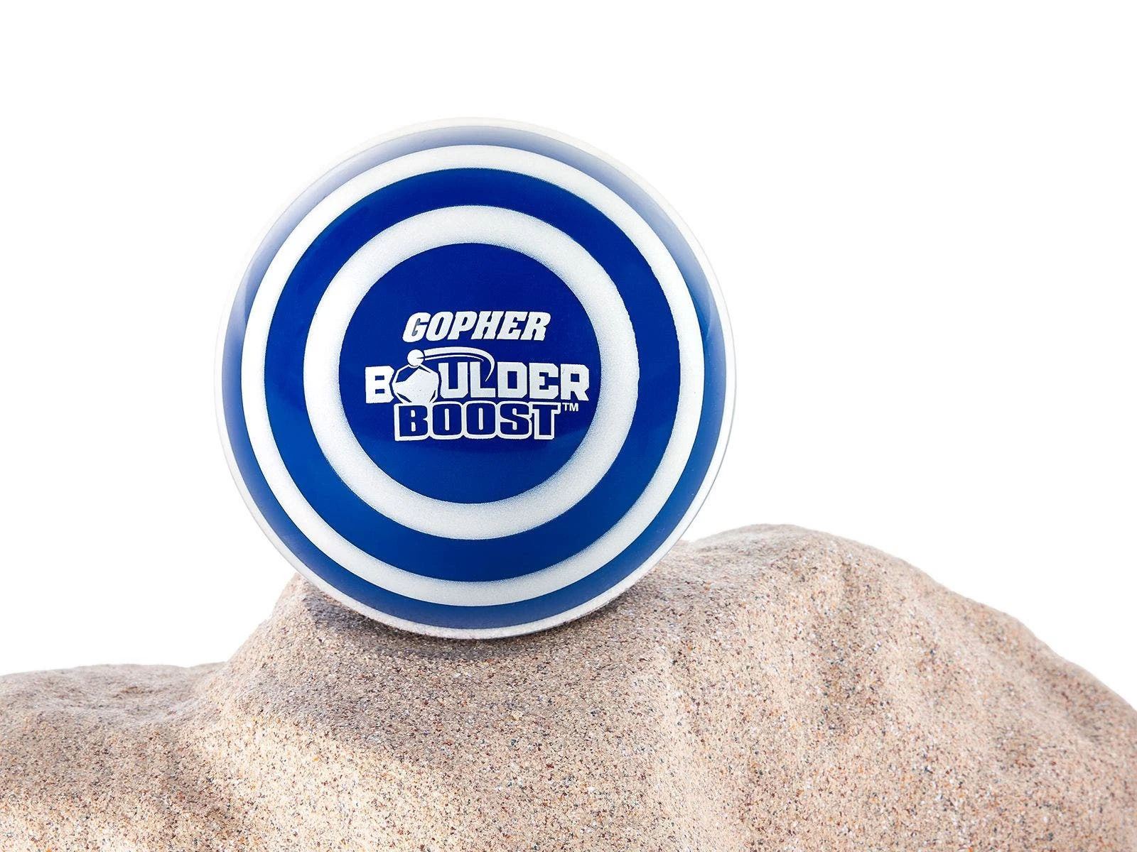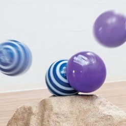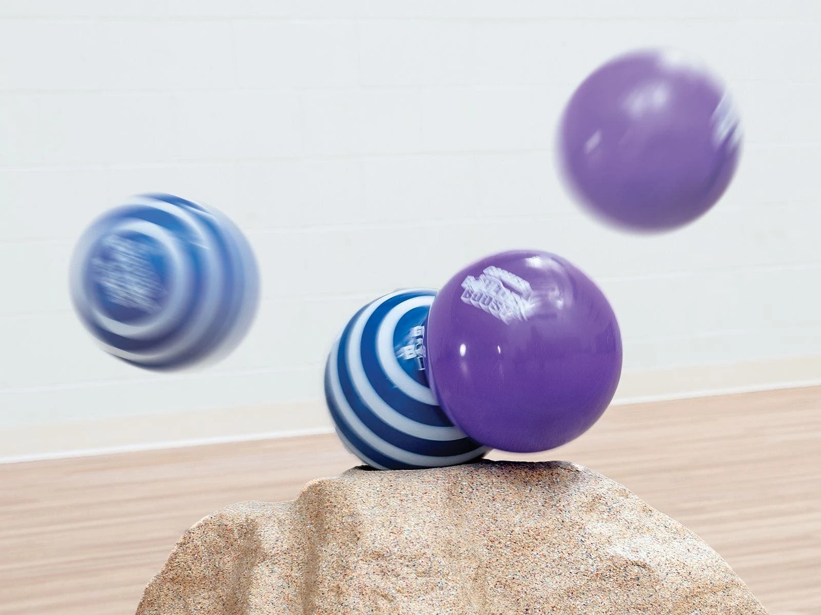 The boulder is made of heavy-duty polyethylene plastic and includes a groove on the top of it to set the bullseye ball on during game play. All balls are 7″ dia and made of vinyl. The sand-weighted bullseye ball increases the challenge when trying to knock it off the boulder.