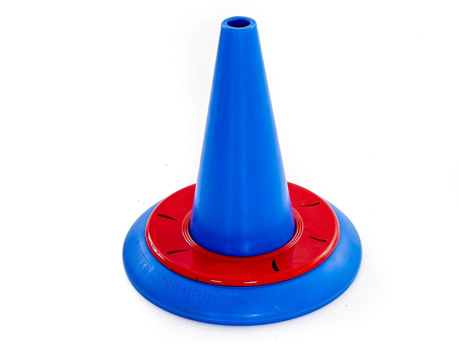 Add a challenging new element to flying disc games using a disc attached to a cone! Players throw the cone/disc combo just like a regular disc, trying to land them right side up. Once they succeed, players begin throwing their discs, trying to land them on the cone. After all teammates succeed, they throw the ConeDrone cone and repeat the process until the team crosses the finish line. The first team to complete the challenge wins!