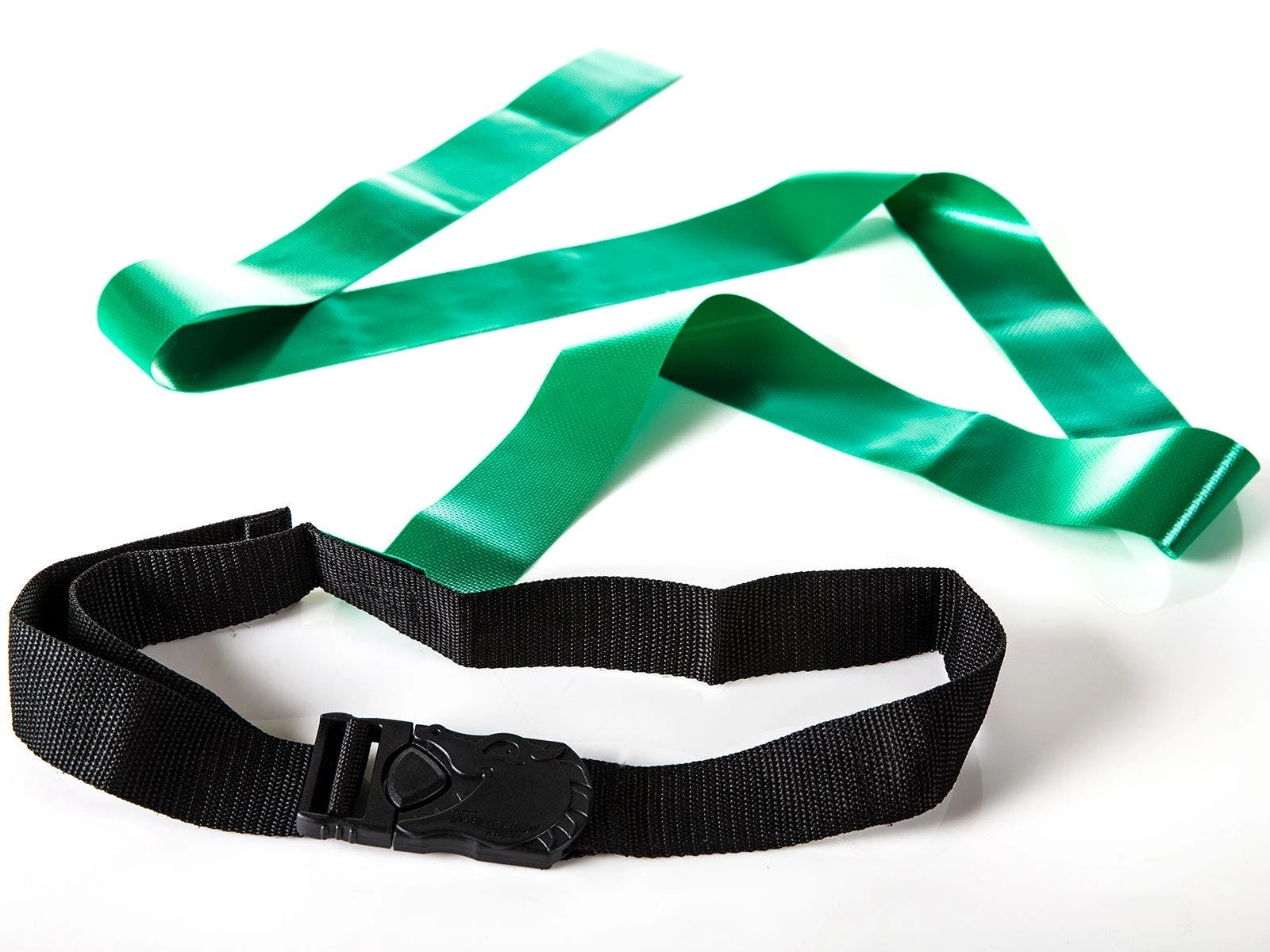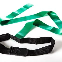 The game features a unique flag belt. It’s similar to some flag football belts, but has just 1 flag that is much longer than standard flags (60″L). Instead of being pulled off by hand, other players step on it. The belt has a slide-and-click buckle that’s easy to use.
