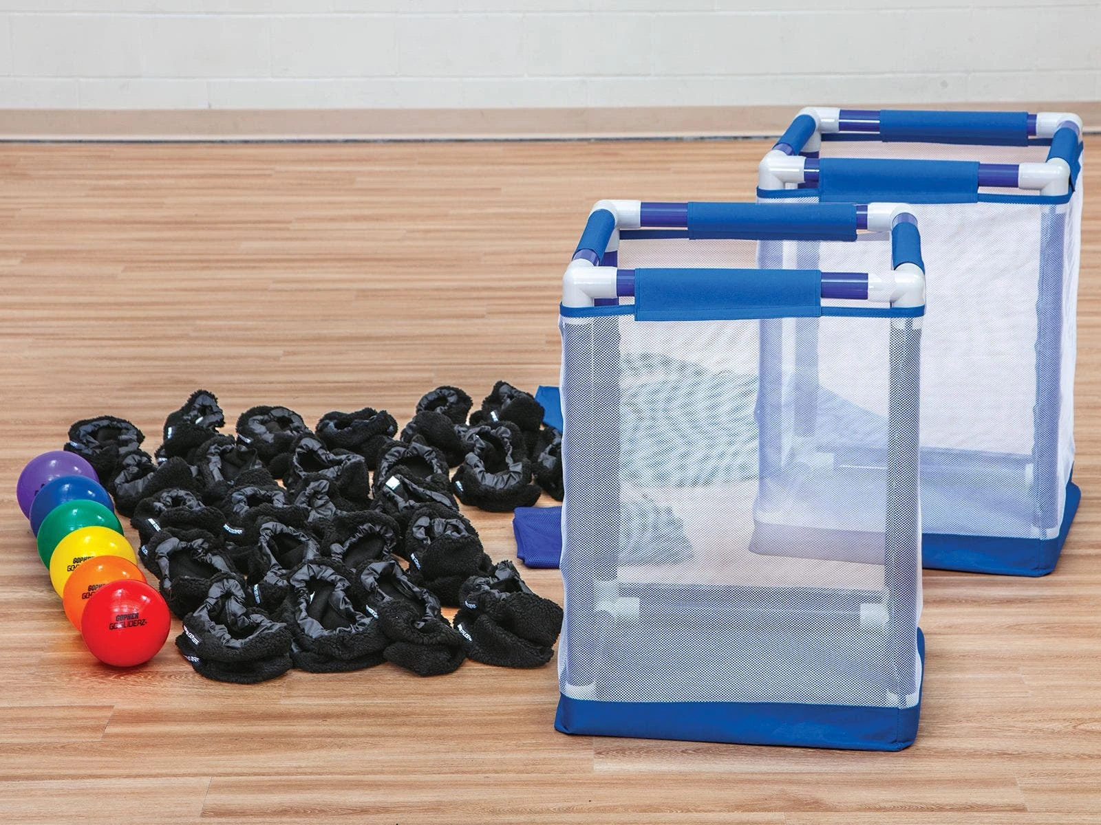 Set includes 2 goals (22″ sq x 30″H), 6 Rainbow balls (7″ dia), 24 pr GoGliderz, a VersaBag mesh storage bag, and activity instructions.