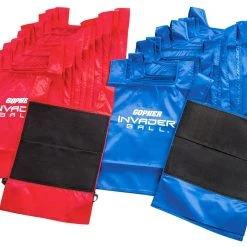 Teams compete during these target games to score the most points by hitting one of three hook-and-loop fastener targets on their team’s goal. All players start with a soft fabric ball stuck to the back of their pinnies. Players can choose to remove the ball to shoot or pass it to an open teammate for a shot. But watch out as opponents try to steal the ball off your back! Play until a team reaches a certain point total or for a specified amount of time.