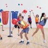 The 3.5″ dia are made of encased foam for soft impact. They are also small enough for hands of any size to comfortably hold them. Balls are available in a set of 4 (2 ea red, blue).