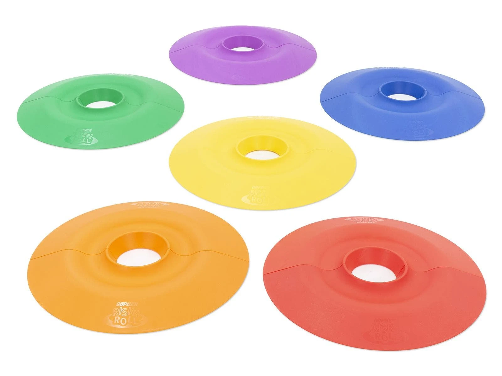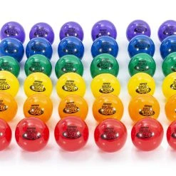 Circular goals are made of injection-molded polypropylene plastic for long-lasting durability. They are lightweight for easy relocation and disassemble for compact storage. Set includes 6 goals (30″ dia; 3-1/2 lb), 36 inflatable vinyl balls (4″ dia), a VersaBag mesh storage bag, and activity instructions.