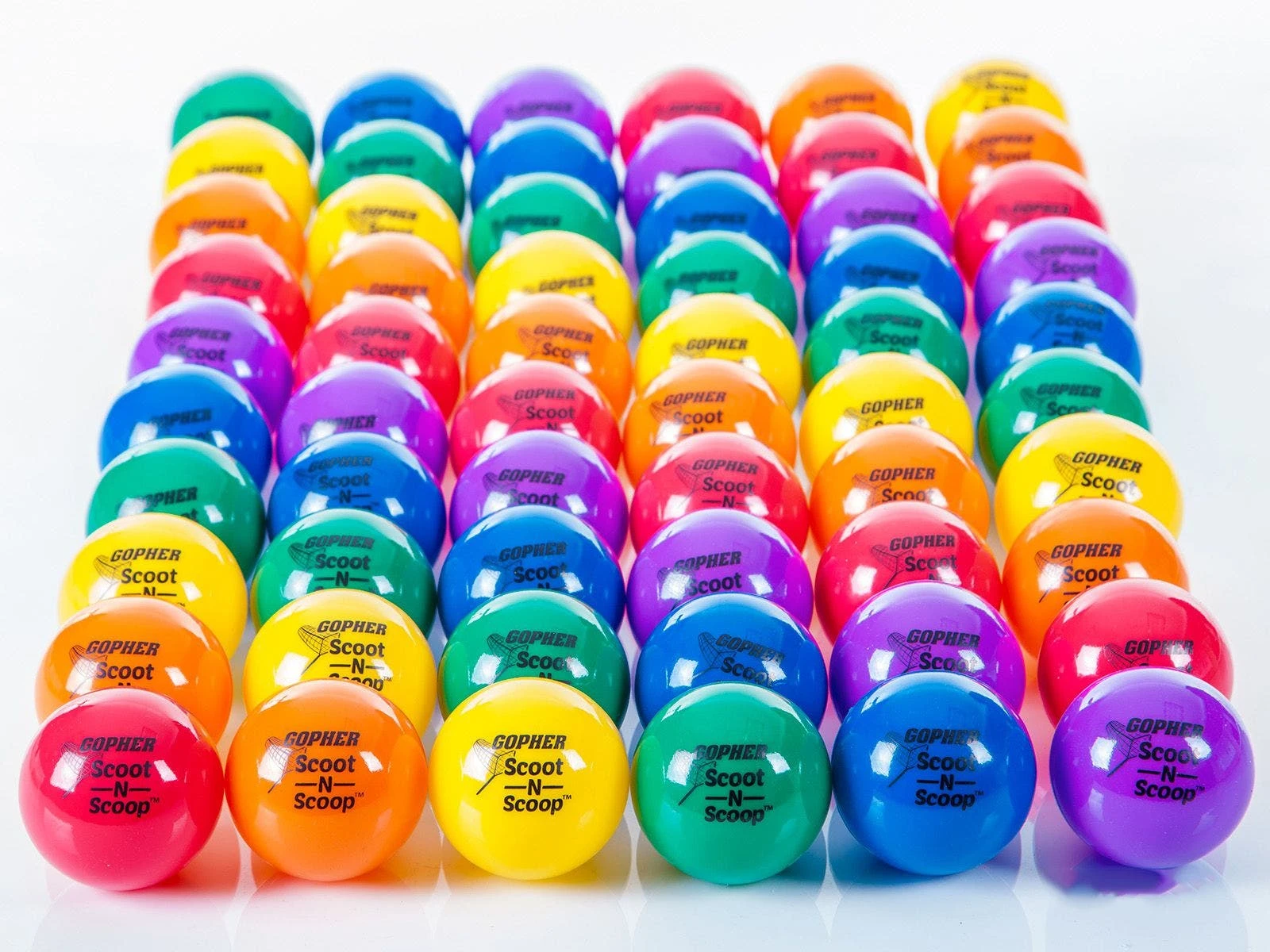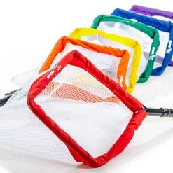 Inflatable Scoot-N-Scoop balls come in fun Rainbow colors for added excitement and easy team organization. The nets are made of PVC tubing with a Rainbow sleeve and white net. Their TPR handle provides a better grip for all users.
