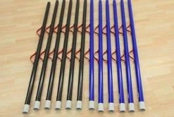 Durable ABS poles will last for years of play. The set includes 6 ABS tube sections in both blue and black for easy team identification. Connect tubes to make a pole long enough for three players, and another section for two players, as well as one for each goalie. The poles include handles to show players where grab on and stand for the best grip. When you’re ready to store the poles, simple release the push pins to separate the poles for compact storage.