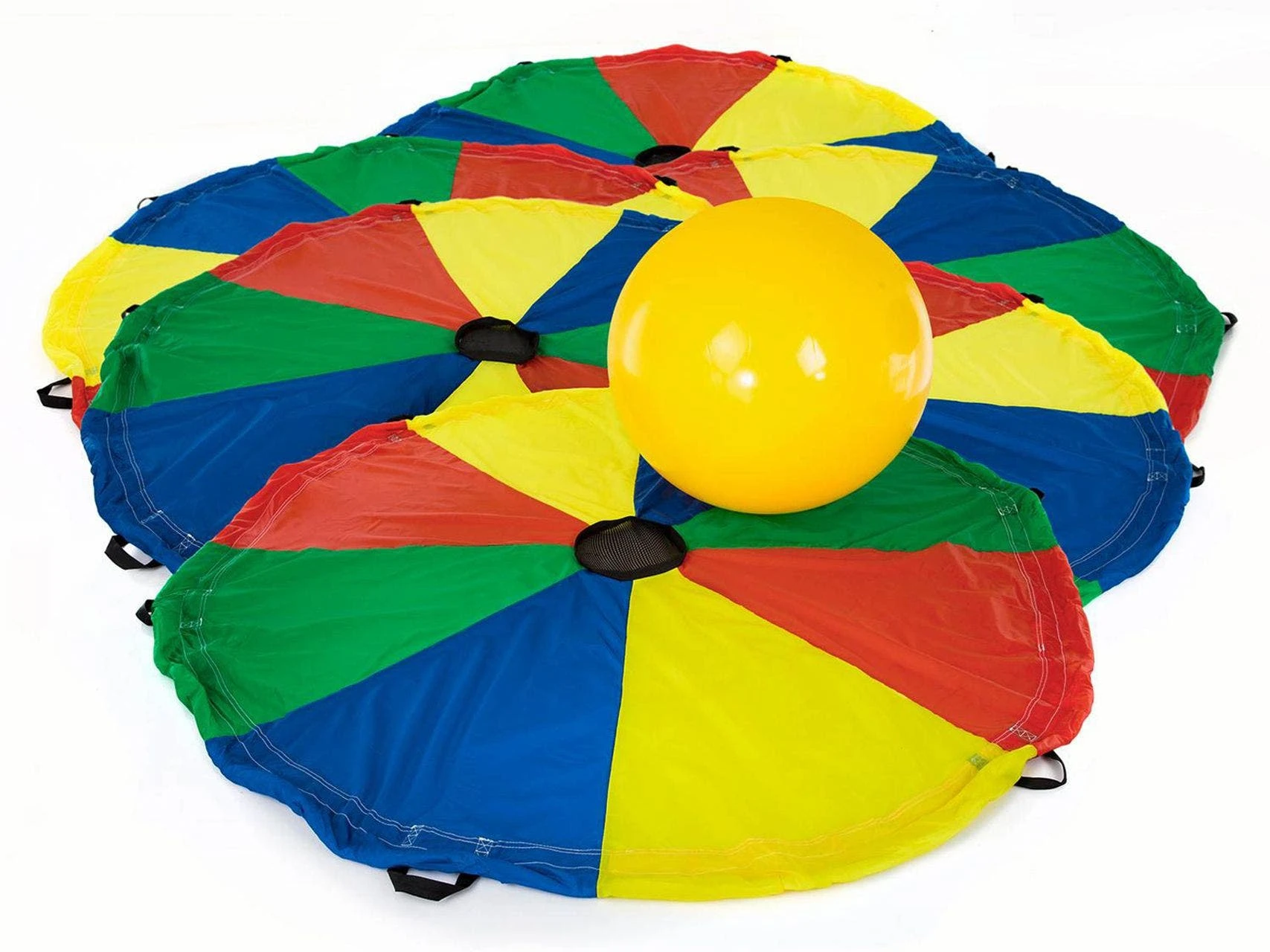 Set includes 6 parachutes, 1 premium-quality 36” dia cage ball bladder, and an activity guide.