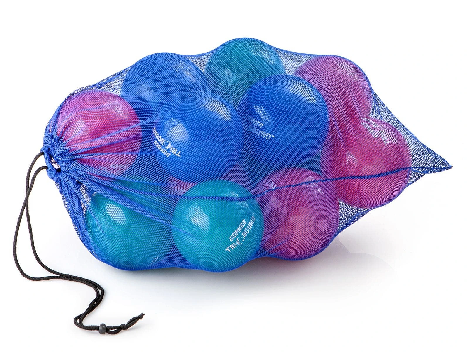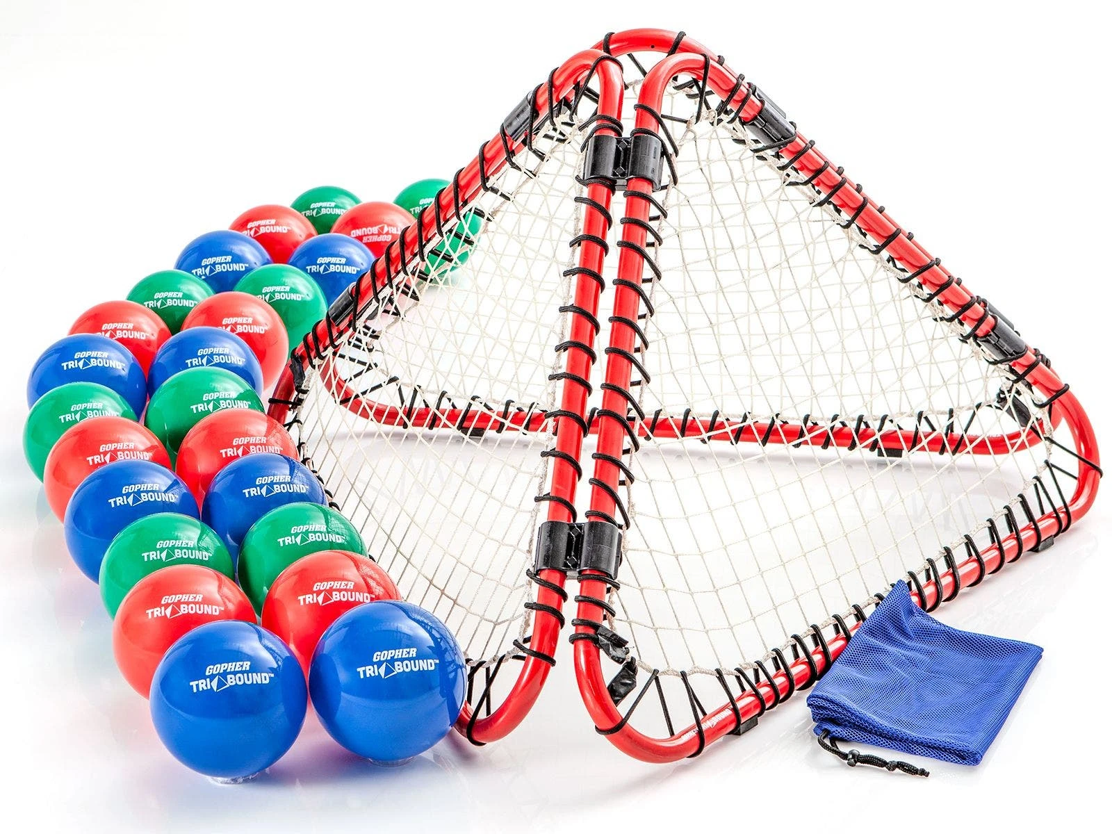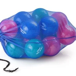 Set includes 1 rebounder, 24 balls (8 ea red, blue, green), a VersaBag mesh storage bag, and activity instructions. Rebounder is 45″L x 42″W x 30″H. Additional rebounder sold separately.