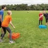 Dice are made of pick-proof coated foam and measure 5″L x 5″W. Set includes 2 dice (1 ea red, blue), 1 Gopher Performer Rubber Basketball (size 7), a VersaBag mesh storage bag, and activity instructions.
