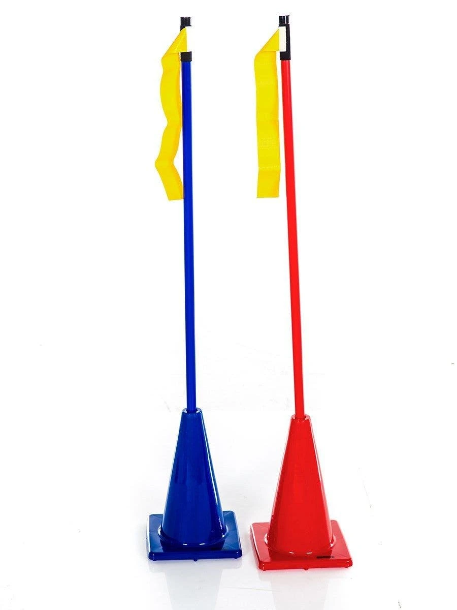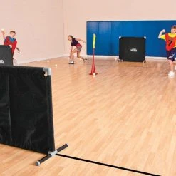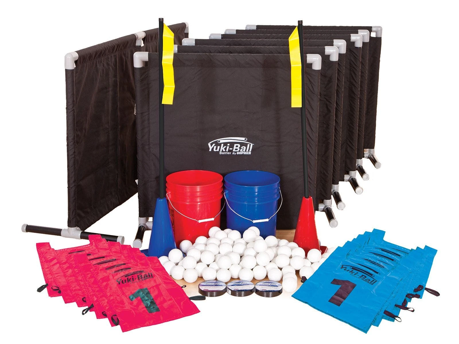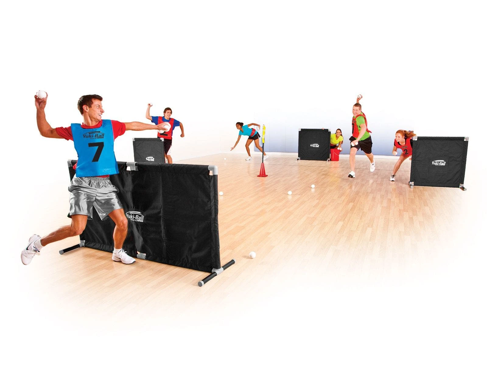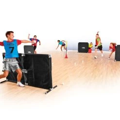 All equipment is made with high-quality materials, so you can be sure this whole set will last for years through game after game of high-energy play. This snow ball game has enough gear to accommodate up to 14 players, 7 per team. Indoor Set includes weighted bases that rest on the gym floor.