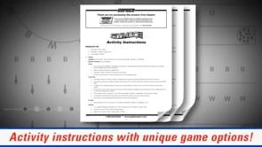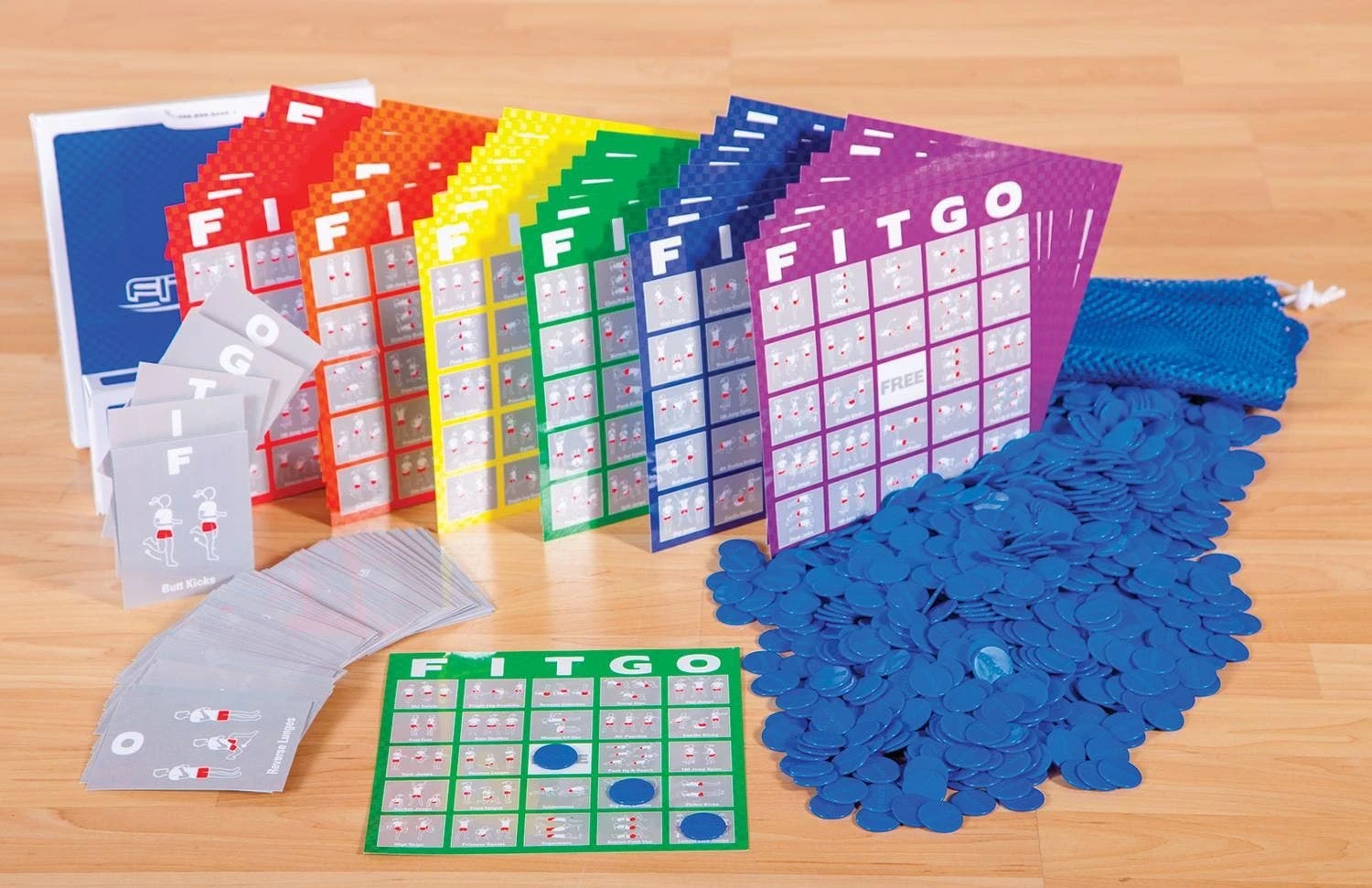 Set includes 48 game cards (8-1/2″L x 8-1/2″W), 85 teacher calling cards, 1,200 Fitingo Chips, a VersaBag mesh storage bag, and activity instructions with team play options and individual variations.