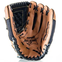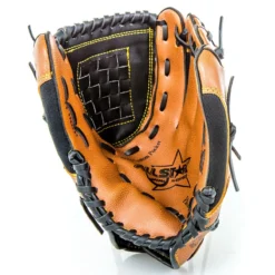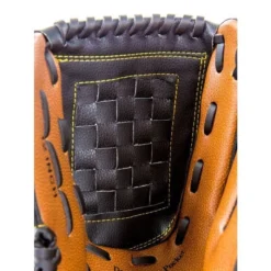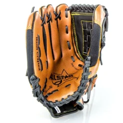 Leather-like synthetic material reduces break-in time on these gloves, while padded palms cushion players’ hands upon impact. These gloves feature a fully-laced bridge for added strength and a woven web for secure catches. An adjustable strap makes it easy to quickly find the perfect fit, which is important in settings with multiple players sharing gloves. Lightweight construction is ideal for beginners.