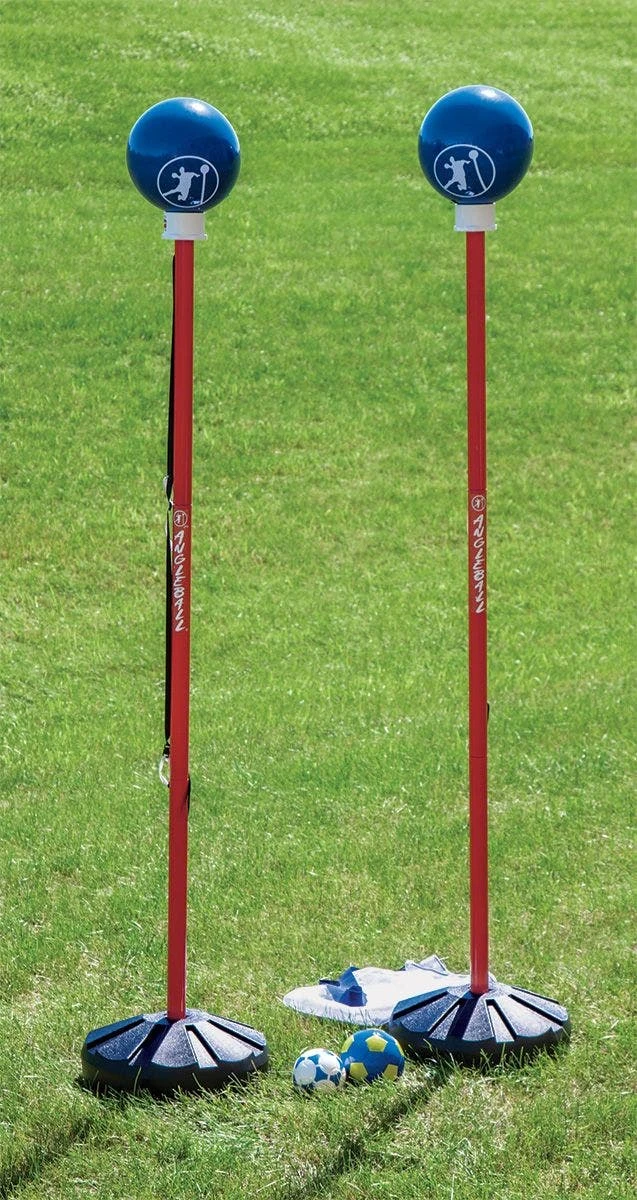Even with a 10’H standard, it is extremely easy to re-mount the ball at the top of it. The 8-1/2″ dia ball is attached to a string that runs through the pole, so teachers or students can simply pull the string tight from below to pull the ball back on to the top. Players use the smaller angleball to throw at the target balls and knock them off the pole.