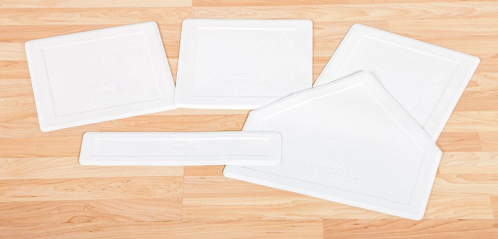 The bases are made of virgin rubber, ensuring they will stand up to long periods of institutional use. The rubber prevents them from tearing and will not become brittle or hard when left outside. Beveled edges increase safety because there’s less chance players will trip on them as they step on the base.