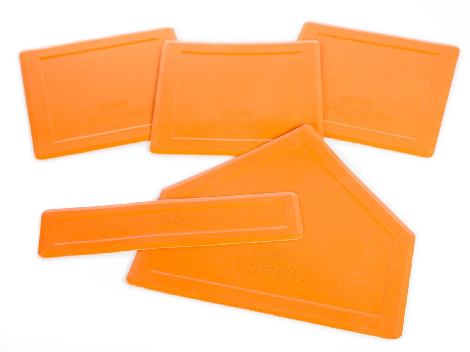 Bases measure 12-1/4″”, home plate is 17″, and pitcher’s mound is 17″. Each set includes 3 bases, 1 home plate, and 1 pitcher’s mound.