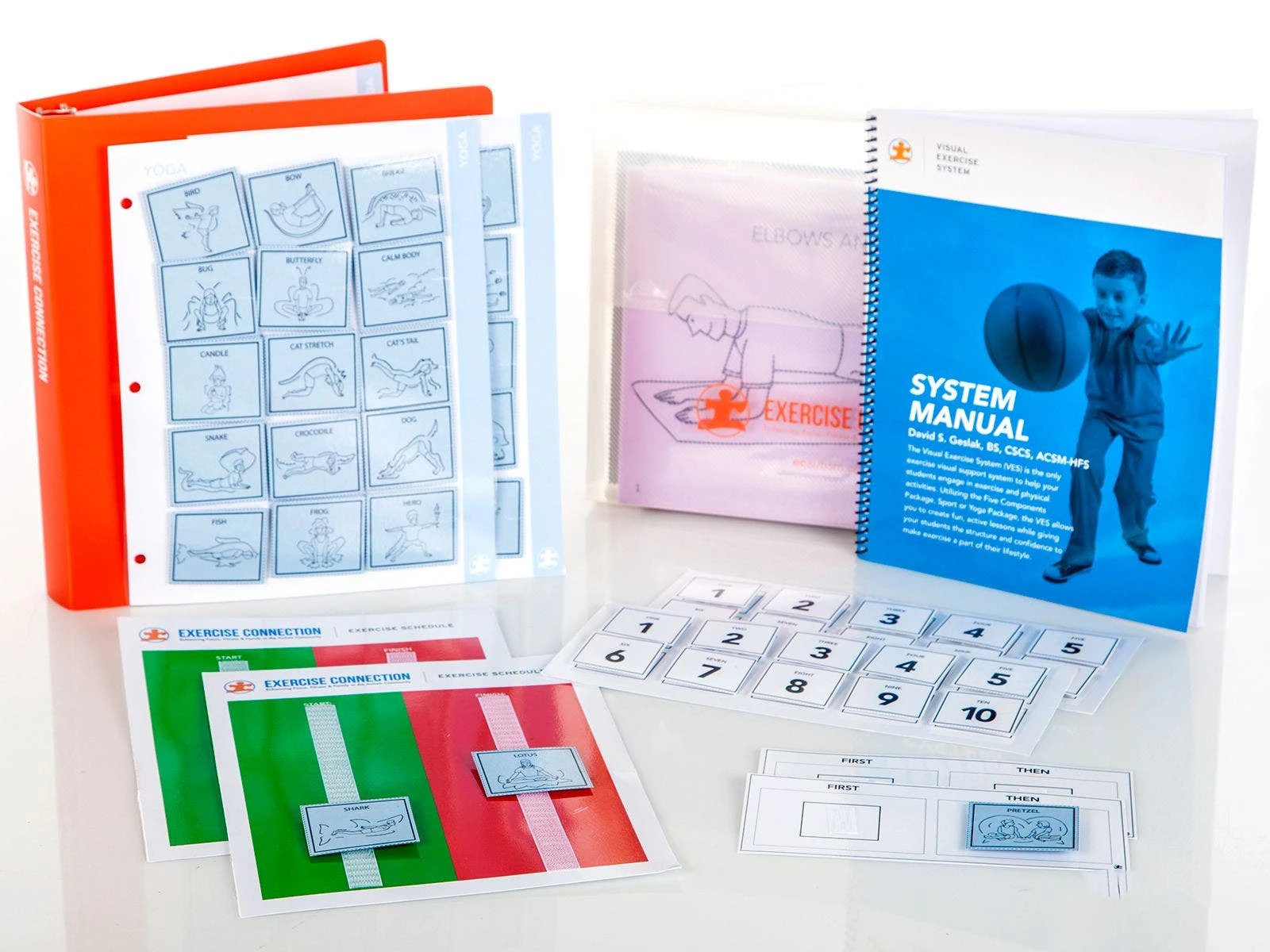 Mats in this pack provide comfort and feature an anti-slip top and bottom for enhance traction and safety. Soft to the touch and welcoming in any yoga position, students will enjoy mats. Along with the mats, the Total Visual Exercise System – Yoga information pack features 31 visuals (2” x 2” small and 8-1/2” x 11” large) including 2 exercise schedules, 2 countdown boards, 2 first-then sequential activity boards, exercise stories and worksheets, and 1 manual to guide implementation.