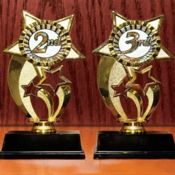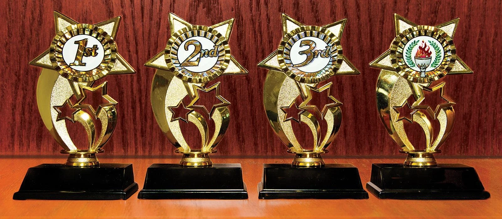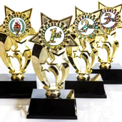 With 1st, 2nd, and 3rd place trophies, it’s easy for instructors to award the traditional achievement places for virtually any event. For larger events with more participants or for situations without placing, participant awards are also available. Trophies are available in a complete set or individually in 4 places. Trophies are 7”H.