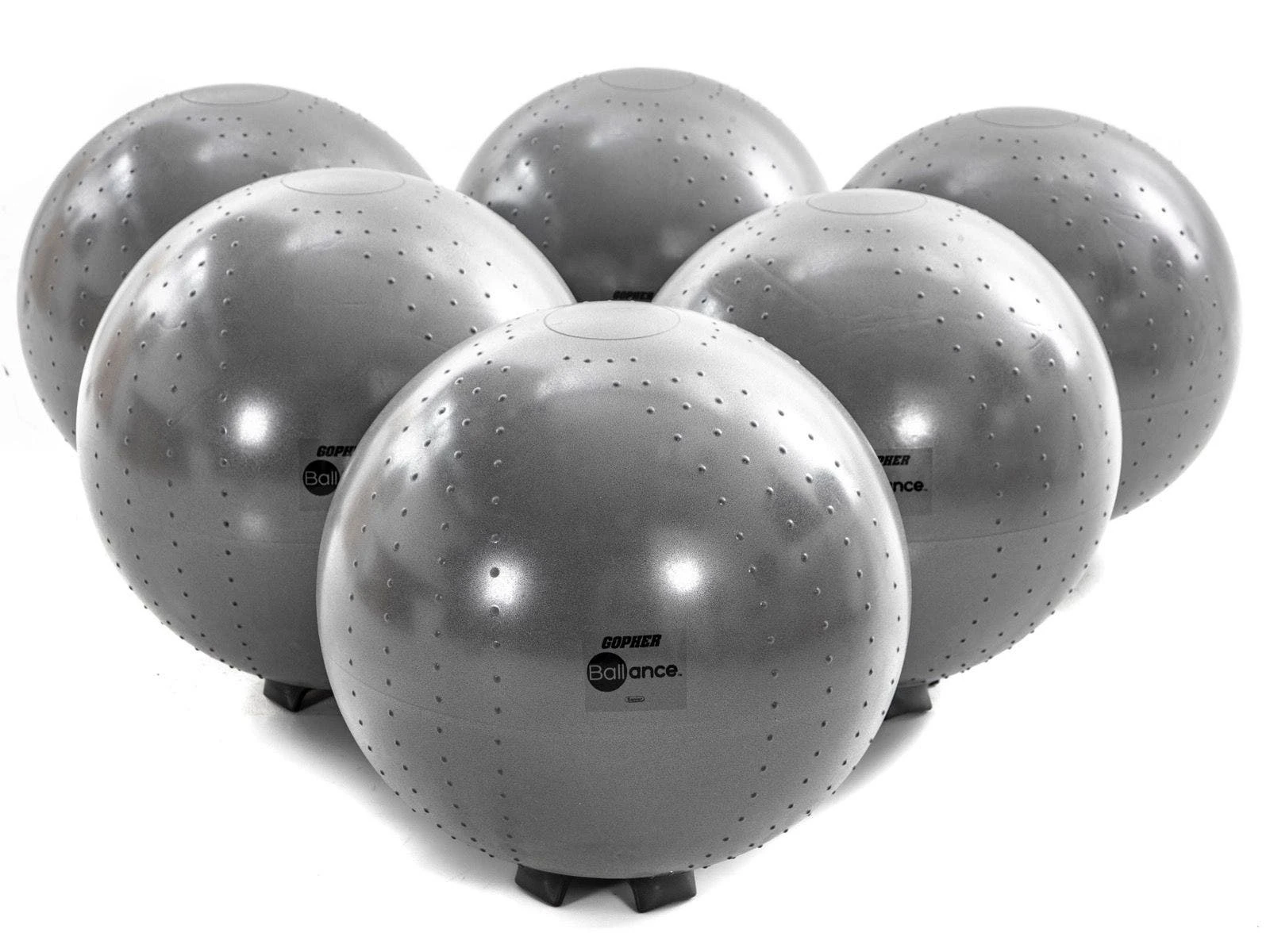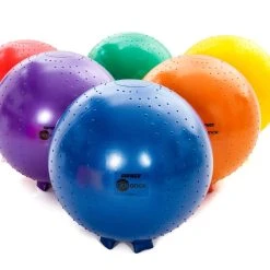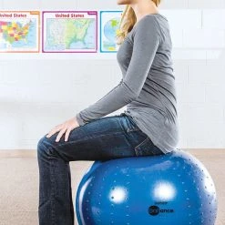 Molded-in feet keep stability balls in place when not in use and retract into the ball when students on them. Unstable design helps students improve their focus and core strength while sitting on them. The chair is made of a durable, burst-resistant material that accommodates up to 500 lb. A slight texture on the top provides traction.