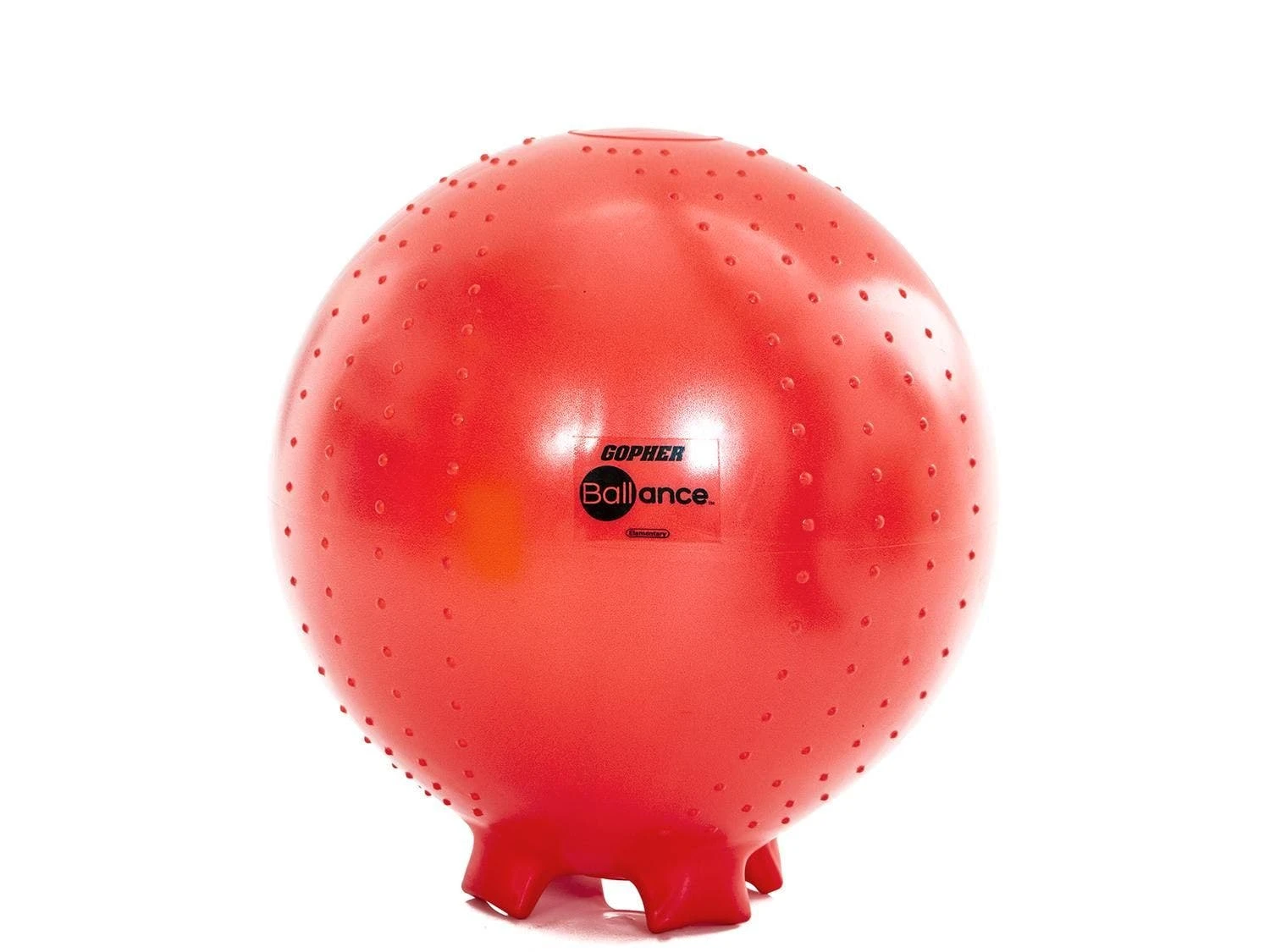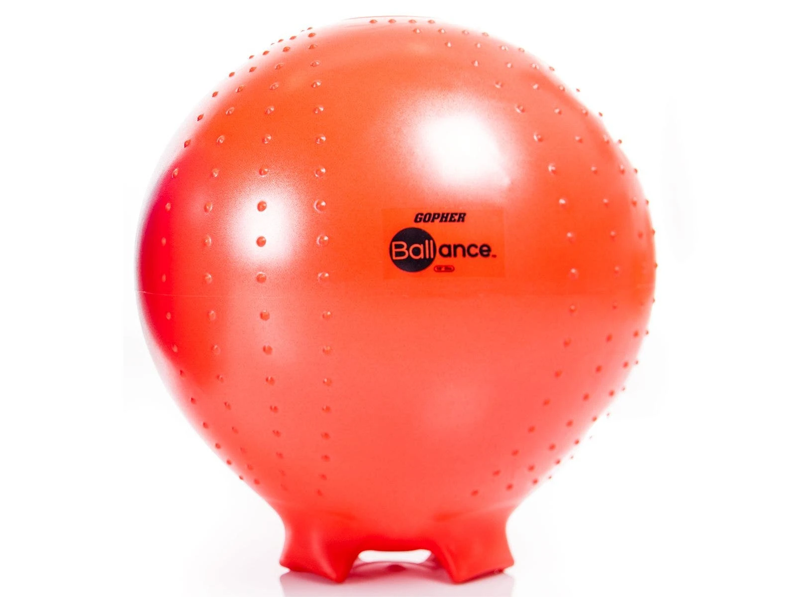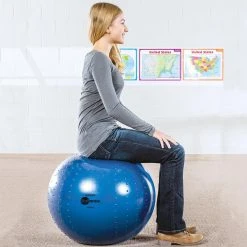 Molded-in feet keep stability balls in place when not in use and retract into the ball when students on them. Unstable design helps students improve their focus and core strength while sitting on them. The chair is made of a durable, burst-resistant material that accommodates up to 500 lb. A slight texture on the top provides traction.