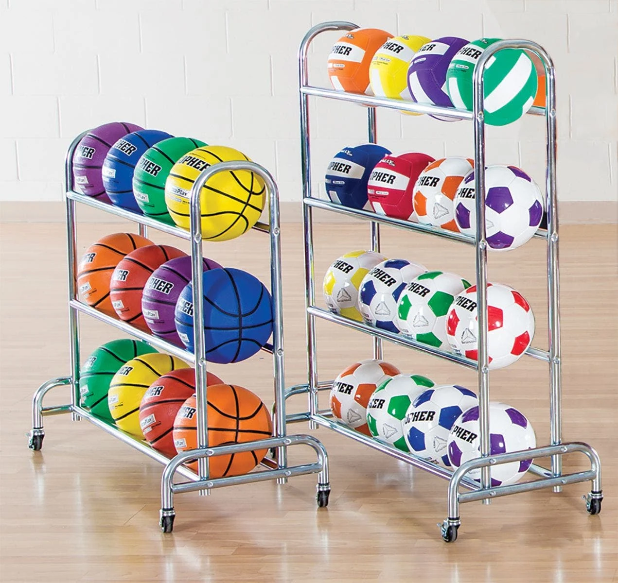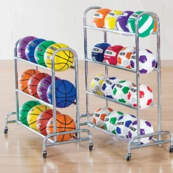 These basketball carts swiftly wheel from storage to the gym floor and back on four 2″ dia casters, and they’re the ideal way to keep balls organized before and after play. Perfect presentation makes it easy to recognize and grab balls for any activity. An open-rack design makes it easy to grab a ball and go, while a wide base adds stability to prevent tipping. Galvanized 1″ dia steel construction stands up to institutional use and will last for years.