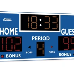 With everything you need to score 3 of the most popular indoor sports, this high school sports scoreboard is a great addition to any gym! It displays important game information at a glance, with large numbers for time from 99:59 (with 1/10 timing in the last minute), scores from 0-199, and period easily visible. 7’H scoreboard also includes team and individual fouls.