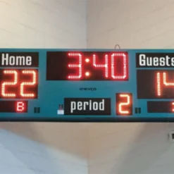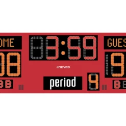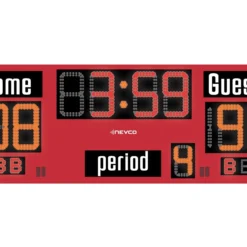 2,700 displays team score, game time, period, and bonus/double bonus. 2,750 adds next possession, serve, advantage, bonus/double bonus, player/foul, game, weight, and game time. Both feature 13″H & 9″H LED digits and horn. Lighted time, colon, and decimal automatically adjust to 1/10th of a second. Each board also includes a wireless remote. Upgrade your scoreboard with electronic team naming; call us for details.