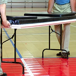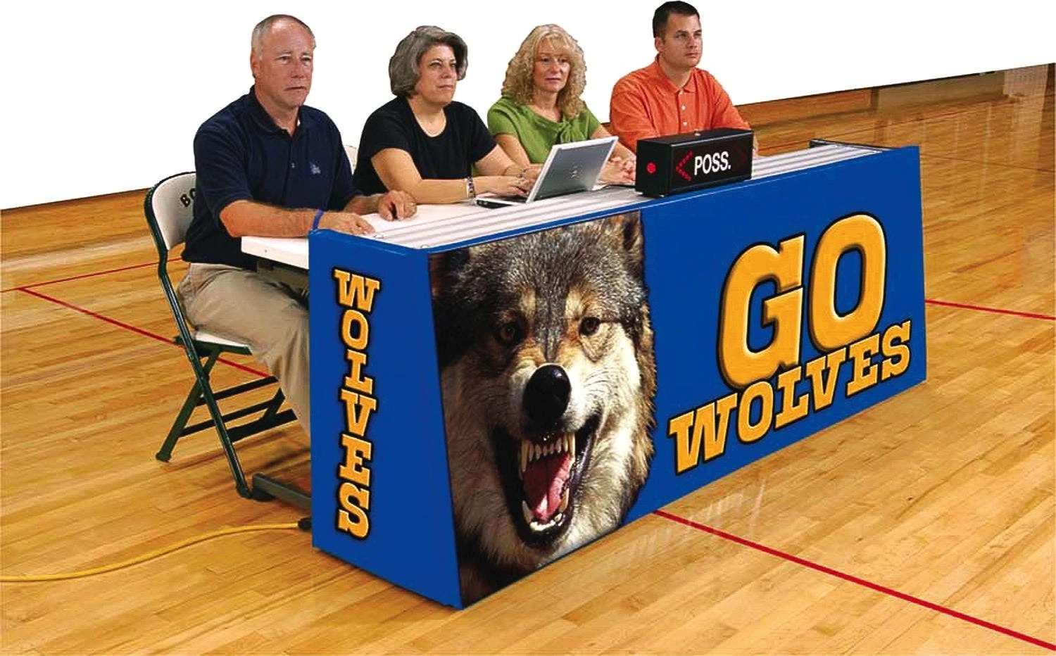 - Sport Pride Padded Table. 2″ thick padding protects athletes and officials during accidental collisions with the table. 8’L aluminum/steel table has a powder-coated and anodized finished to ensure dependable, long-lasting use. A possession arrow on the table makes it easy for spectators to quickly see who’s in control of the ball. 110V outlets support a shot clock or computer. 96″L x 34″W x 34″H; 175 lb.