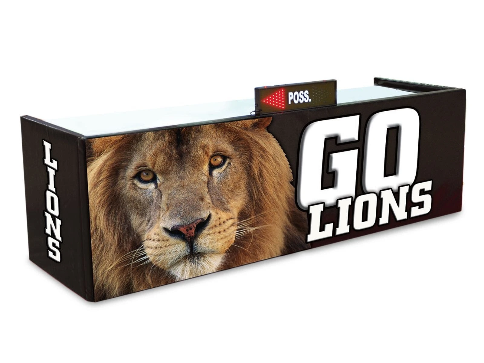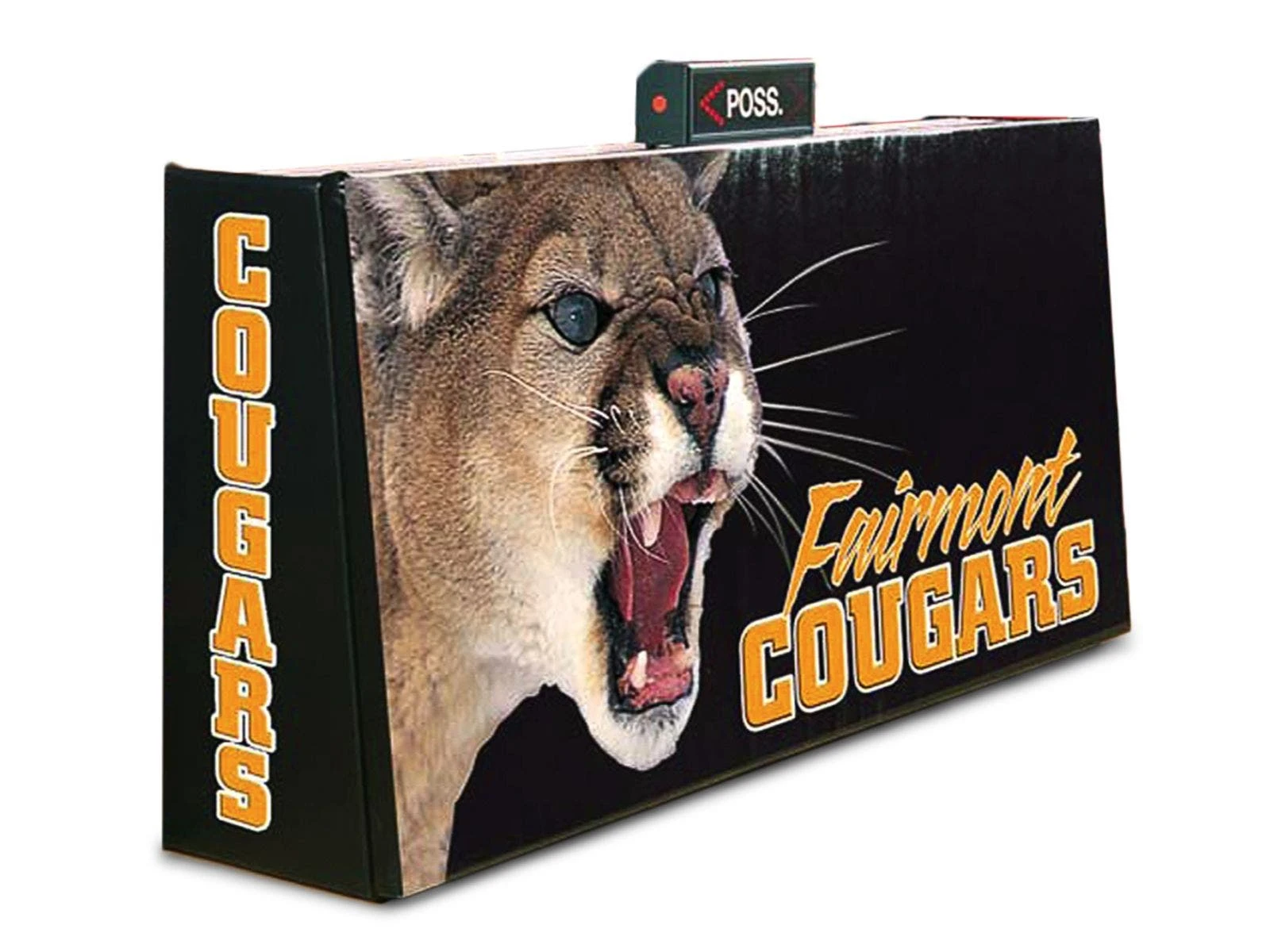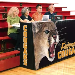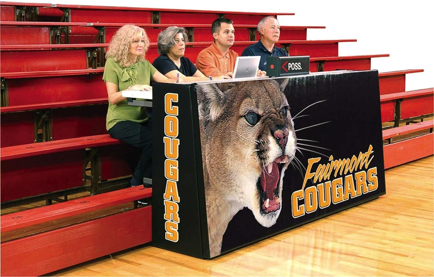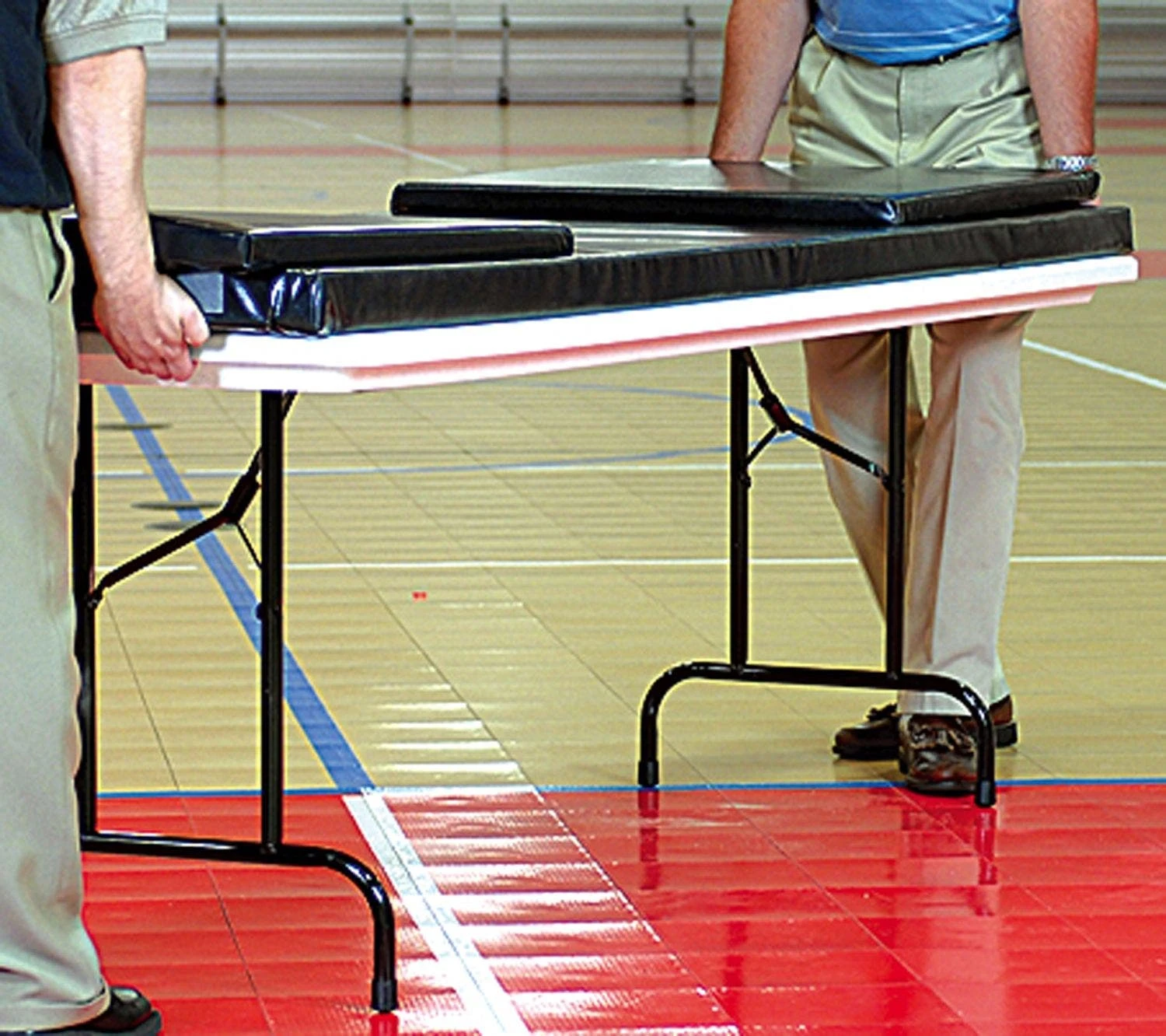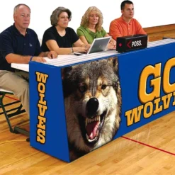 - School Spirit Padded Table. Full padding on both the sides and the front (2” thick on sides, 1” thick on front) protects players. Panels attach to table with hook-and-loop fasteners. Universal design is ideal for all events—from sports to admissions tables—to create instant recognition for your institution. Includes an 8’L table. 96″L x 30″W x 30″H; 90 lb.