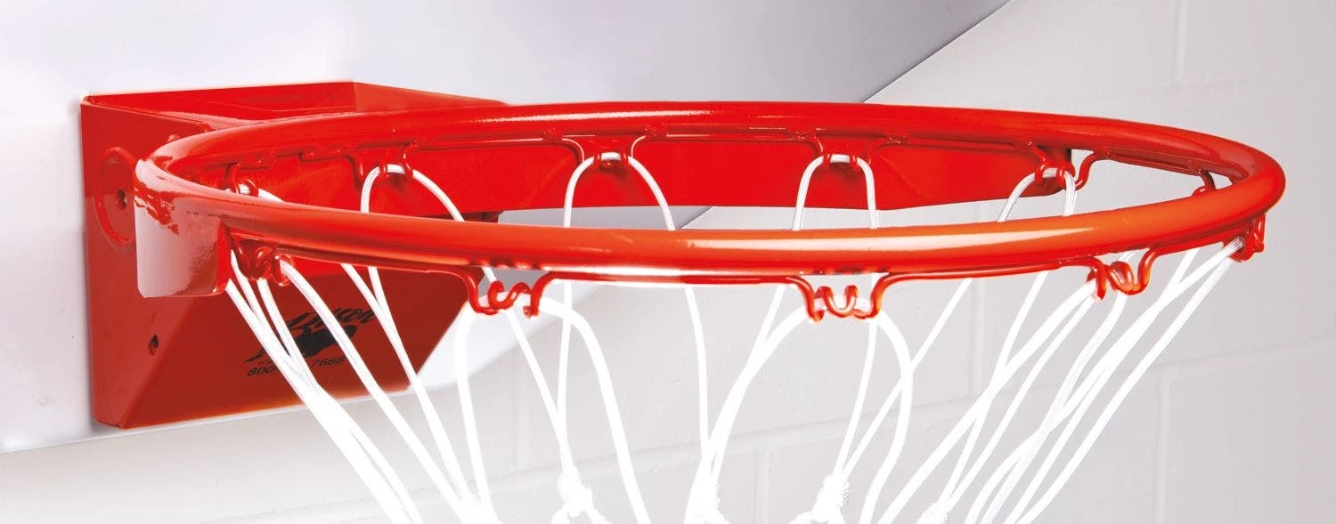 Reliable breakaway hoop that offers great playability during competitive play. Positive lock breakaway mechanism is strong, yet flexible. An adjustable internal mechanism can be set to release at a certain amount of force. Made of durable powder-coated steel for longetivity.