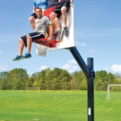 Featuring a deep setback, thick post, and strong construction, these Bison basketball systems are the gold standard for top-tier quality! A 5′ setback prevents players from making contact with the pole as they go in for a layup. In-ground system includes a powder-coated, 6″ sq steel post that’s ready for high levels of play. Front-mount goal offers no flexibility for more durability.