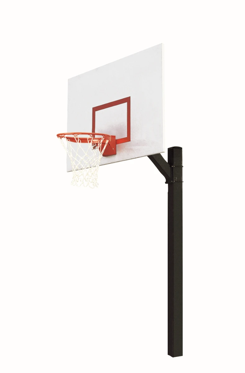 Rectangular, 60″W x 42″H steel backboard makes it an ideal system for all playgrounds. White powder-coated backboard and orange shooter’s square make it easy for players to identify the basketball hoop anywhere on the court. It features a 3′ safe play area behind the backboard as players drive the ball toward it.