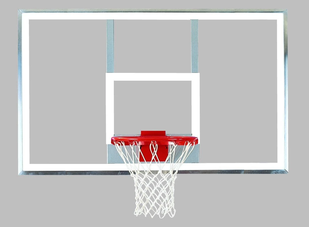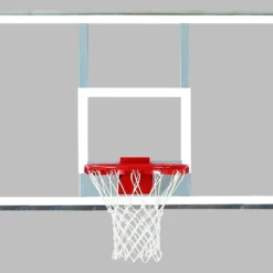 Clear, 1/2″ thick polycarbonate material is virtually unbreakable and will fight off vandalism during outdoor use. The sturdy aluminum frame complements the premium backboard for a safe and reliable finish. Its powder-coated steel structure absorbs nearly all stress from player contact with the goal. A white shooter’s square and border make it easy to identify the goal from anywhere on the court.