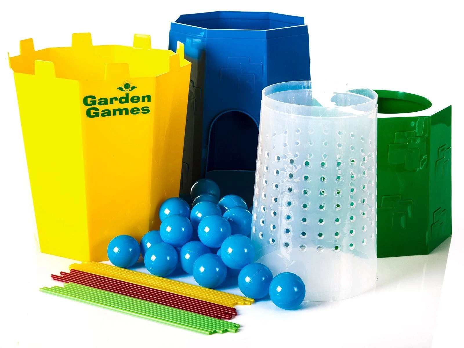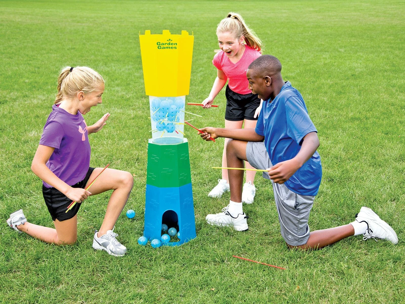 Set includes 1 tower (47-1/2”H X 14”W x 14”D; 9 lb), 30 balls, and 24 colored straws.
