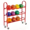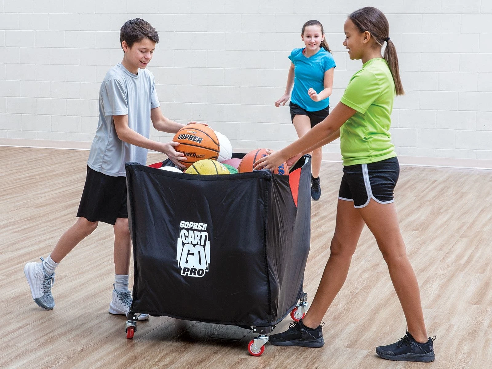 We took our CartGo ball storage cart and upgraded the frame to durable steel for overall strength to withstand institutional use year after year. Flexible elastic sides on the polyester liner fold down, allowing smaller students to access the equipment stored at the bottom of the cart with ease. Frame also easily collapses and fits inside the included bag for compact storage. The larger 3” non-marring locking casters effortlessly haul equipment wherever you need to go!