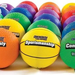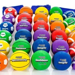 Vibrant Rainbow balls each have a character trait and its definition listed on them to easily incorporate positive character traits into playground activities. Examples include respect, honesty, sportsmanship, confidence, and tolerance. The word is listed on one side of the ball, with the definition on the other. Each pack includes balls from all the major sports (30 total).