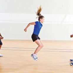 Quickly adjust the difficulty of play by moving bands up or down the enders’ legs, creating scalable fun for all skill levels. The speed of any activity can also be adjusted, to slow things down for beginners or amp up the tempo for skilled jumpers. With 8’L and 16’L options available, it’s easy to add people to the mix. If you need a little help getting started, the activity instructions shows students how to perform 11 fun and easy-to-learn games.