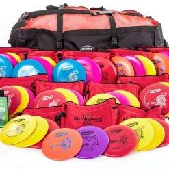 - Deluxe Packs. Include 12 disc sets (36 discs total), 12 QuikShot bags, a DuraBag Duffel, and an instructional EDGE Disc Golf DVD (90 minutes).