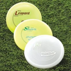 - Innova DX Discs offer more advanced performance and are ideal for students familiar with proper disc throwing motions and disc golf fundamentals. Each disc set includes a driver, mid-range disc, and a putter disc. 140-150 g ea.