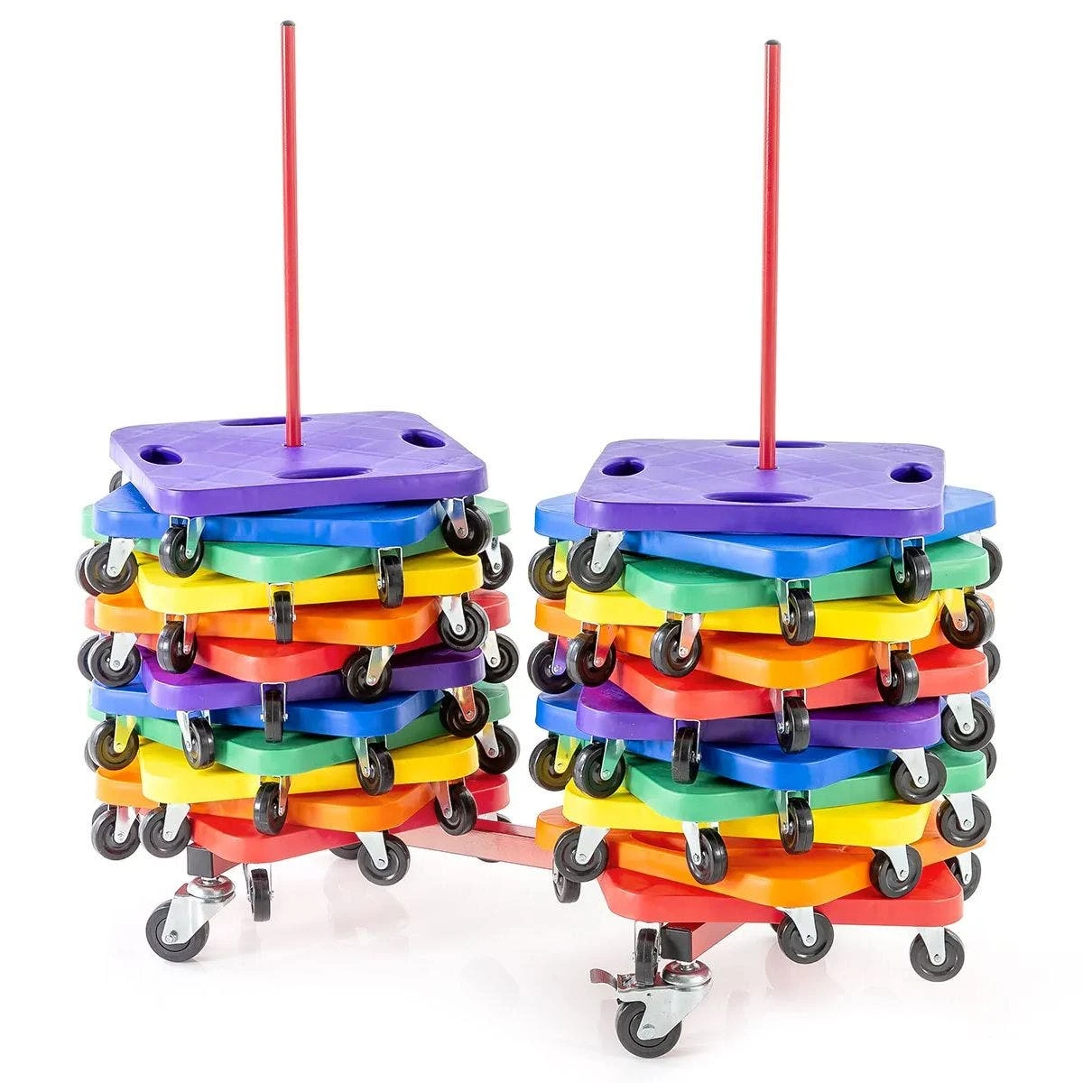 This scooter set includes 24 SteadFast scooters, so no one is left out of the action. Featuring a highly reinforced ABS plastic deck constructed with 10% more material than comparable scooters for extra strength. A 16” sq size is perfect for all ages, and inset handles protect fingers during games.