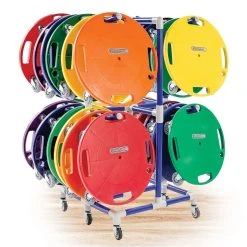 Each pack comes with a storage cart to keep all 24 scooter boards organized when they aren’t in use! The cart is made of our tough ABS plastic, which is stronger than PVC and twice as thick as similar PVC carts on the market. It rolls smoothly on 4 ball-bearing casters, making it a breeze to transport. Two of the casters lock, allowing for safe loading and unloading without having to worry about your cart rolling away. Cart is easy to assemble and sold separately. 30″L x 30″W x 58″H; 30 lb.
