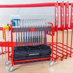 Outfit your entire class with ultra-conveient and durable UltraNet Systems, racquets, shuttlecocks, floor tape, an instructional book, and storage! You’ll have everything you need to conduct badminton lessons for the whole class, and all equipment is easily withstands the rigor of institutional use. Custom storage neatly organizes equipment to minimize effort during setup and takedown, and our UltraNet systems fit together without tools or hardware to further save you time. At the end of class, each net system breaks down into multiple pieces that fit neatly into the included storage option alongside racquets, shuttlecocks and everything else in these packs! Store it all together and never hold up the class again searching for missing equipment. Chose among eight packs to accommodate the size and skill level of your class. The 4-Court Packs accommodate up to 16 players while 6-Court Packs accommodate 24 players. Choose between Elementary/Middle School or Jr High/High School Packs; equipment is the same, but vary in size and type to accommodate student age and abilities.