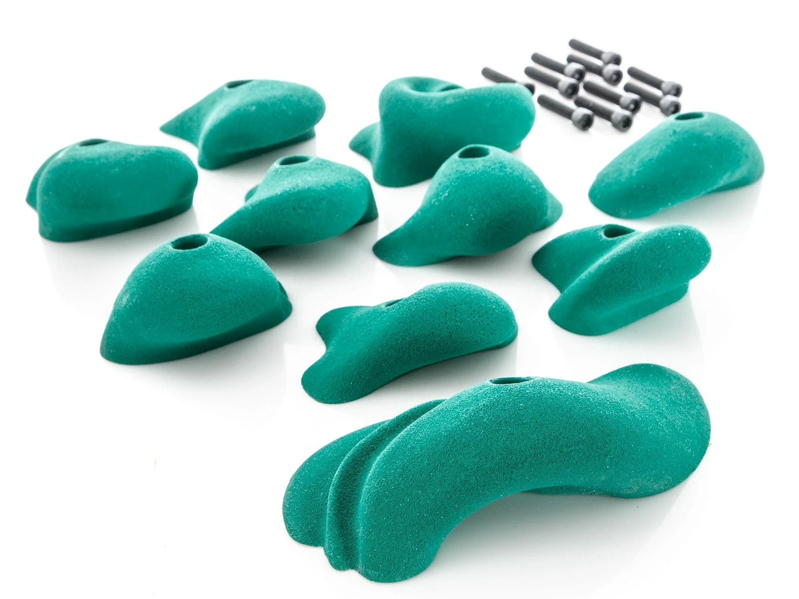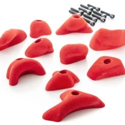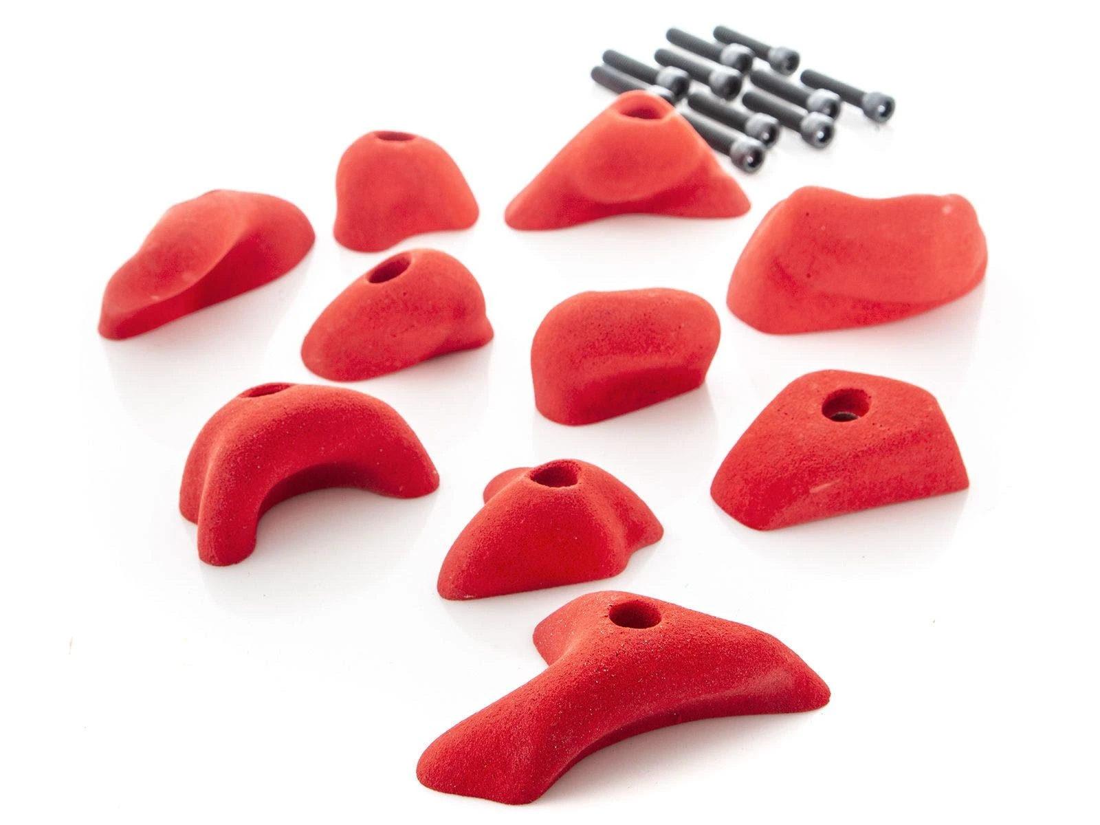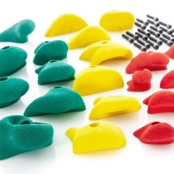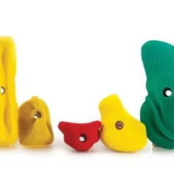 Choose from a Set of 10 in each skill level or a Set of 20 assorted holds (7 large, 7 medium, 6 small) for walls used by students of varied skill levels. Additional holds sold separately hold hoops and rods to add dexterity challenges to traverse walls. Secure holds to wall using T-Nuts (sold separately).