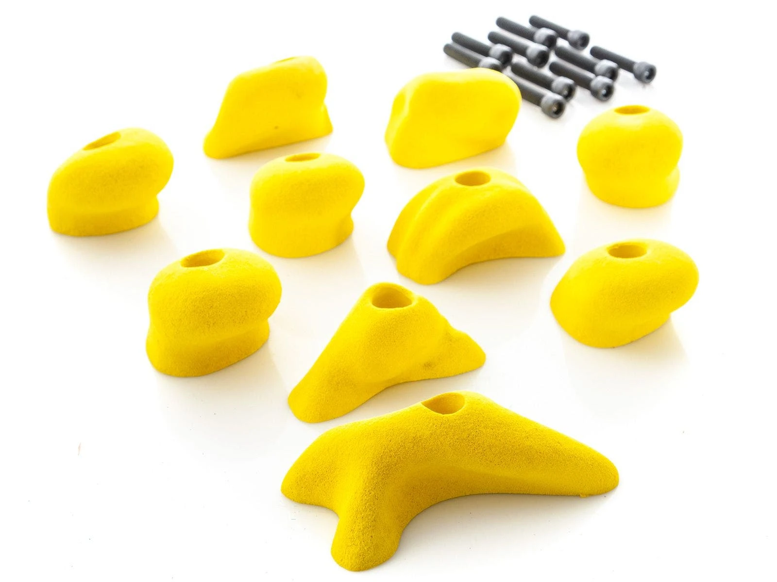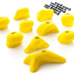 - Yellow holds are medium-sized and designed for intermediate climbers.