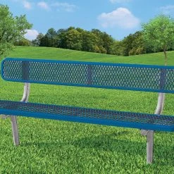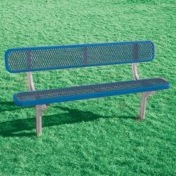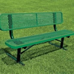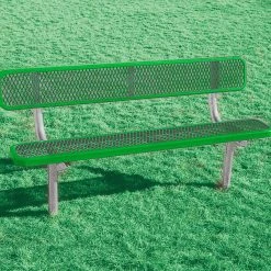 These steel benches with backs are constructed of heavy-gauge metal with a heavy-duty 2-3/8″ OD galvanized-steel tube frame for superb stability. A thermoplastic coating creates a smooth, high-gloss surface that stays cool to the touch, even under the sun. This coating resists fading, mold, and mildew. It also will not crack, rust, or peel. Great for playgrounds, parks, and fields, these benches provide maintenance-free care through years of use.