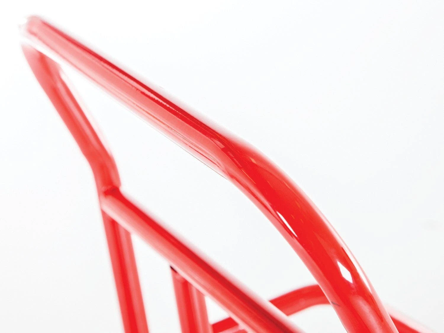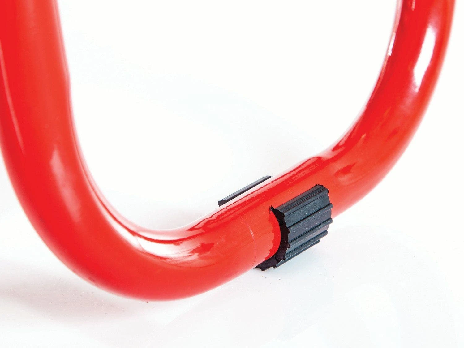 Built to last, this cart features 1” dia powder-coated steel, which looks professional and protects against rust. A rubber bumper on the front support leg protects floors and prevents marring, while two 8” rubber wheels also make the cart run smoothly on your gym floors. 26″L x 23″W x 43-1/4″H; 9 lb.