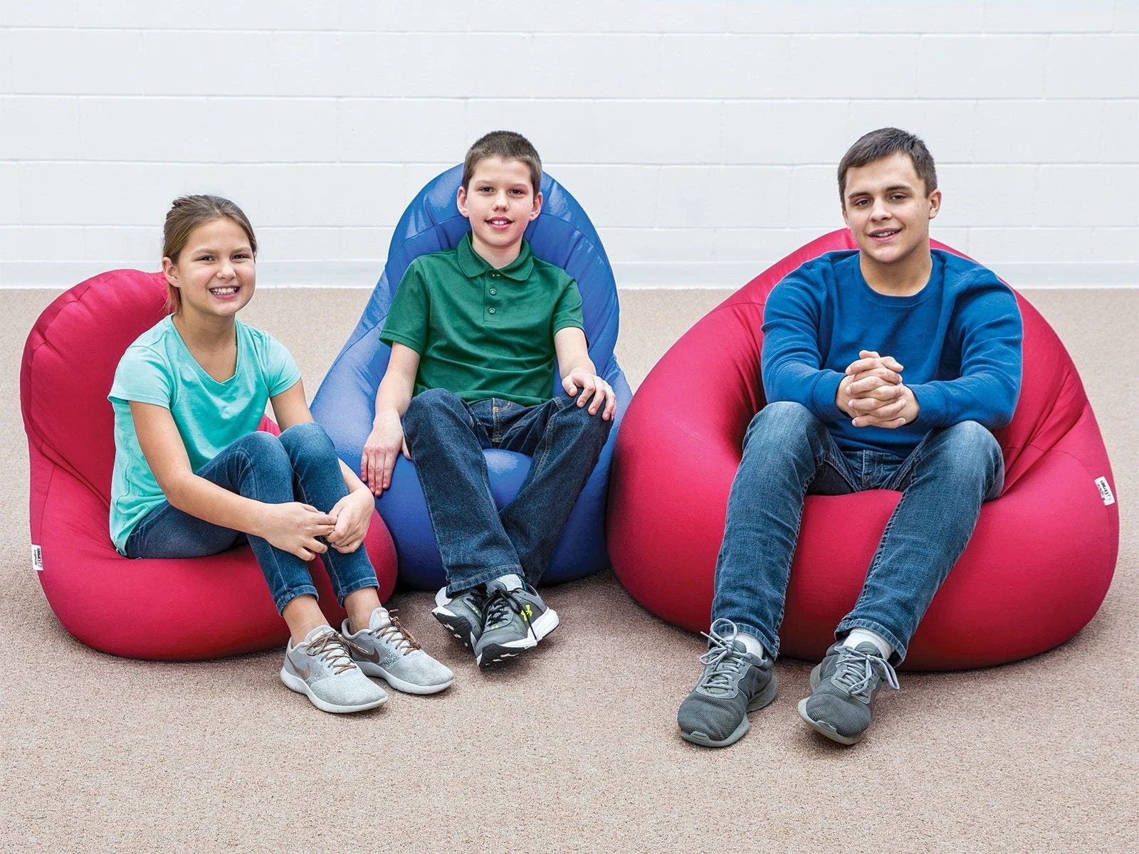 Students can adjust the beanbag chairs for comfortable support in any position. Whether taking notes or taking a break, lightweight, virgin polystyrene beads shift around in the bag and mold around students’ bodies for comfortable, long-lasting use. Each beanbag chair is constructed with a durable polyester Spandex cover and a locking child-proof zipper to keep the beads in and students out of the bag.
