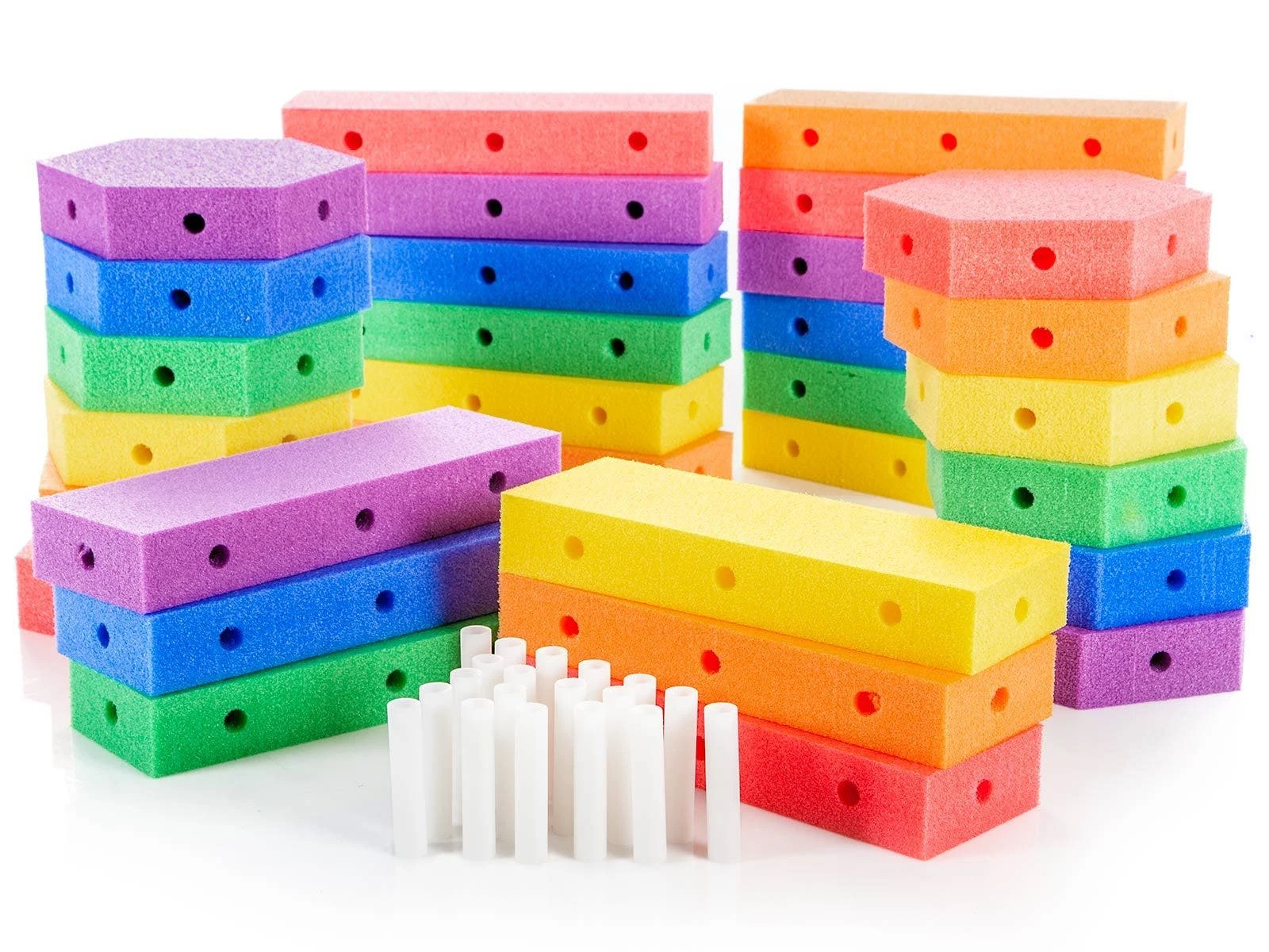 Create a new balance course every time you set it up! Hexagon-shaped beam docks help you quickly interlock channel pieces to form new and interesting shapes. With 6 different connection points on the hexagon docks and 8 connection points on straight pieces, there are endless design options! Docks can also be used by themselves for stationary balance activities.