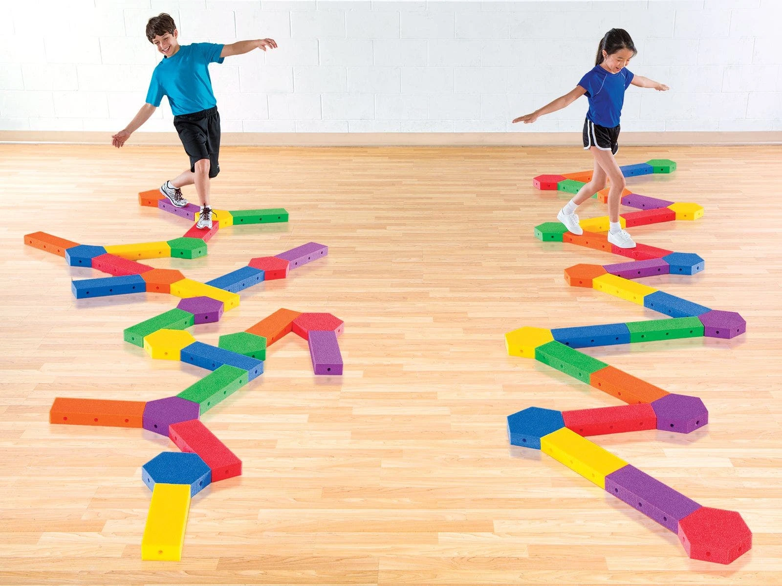The 6-sided, 12″ dia beam docks act as connecting islands, letting you twist and turn the balance course in any direction! Lightweight, durable foam pieces in bright colors make this an ideal set for beginners!
