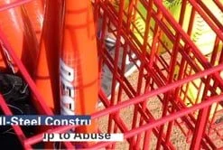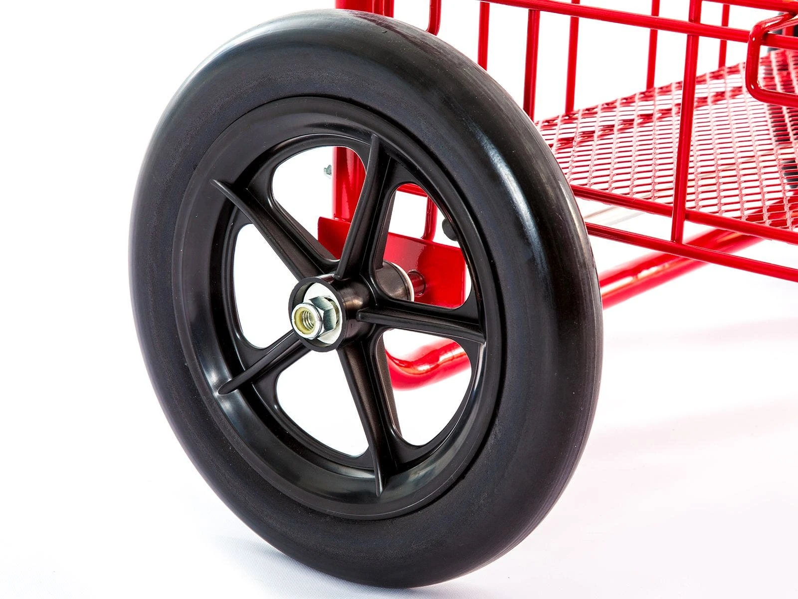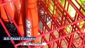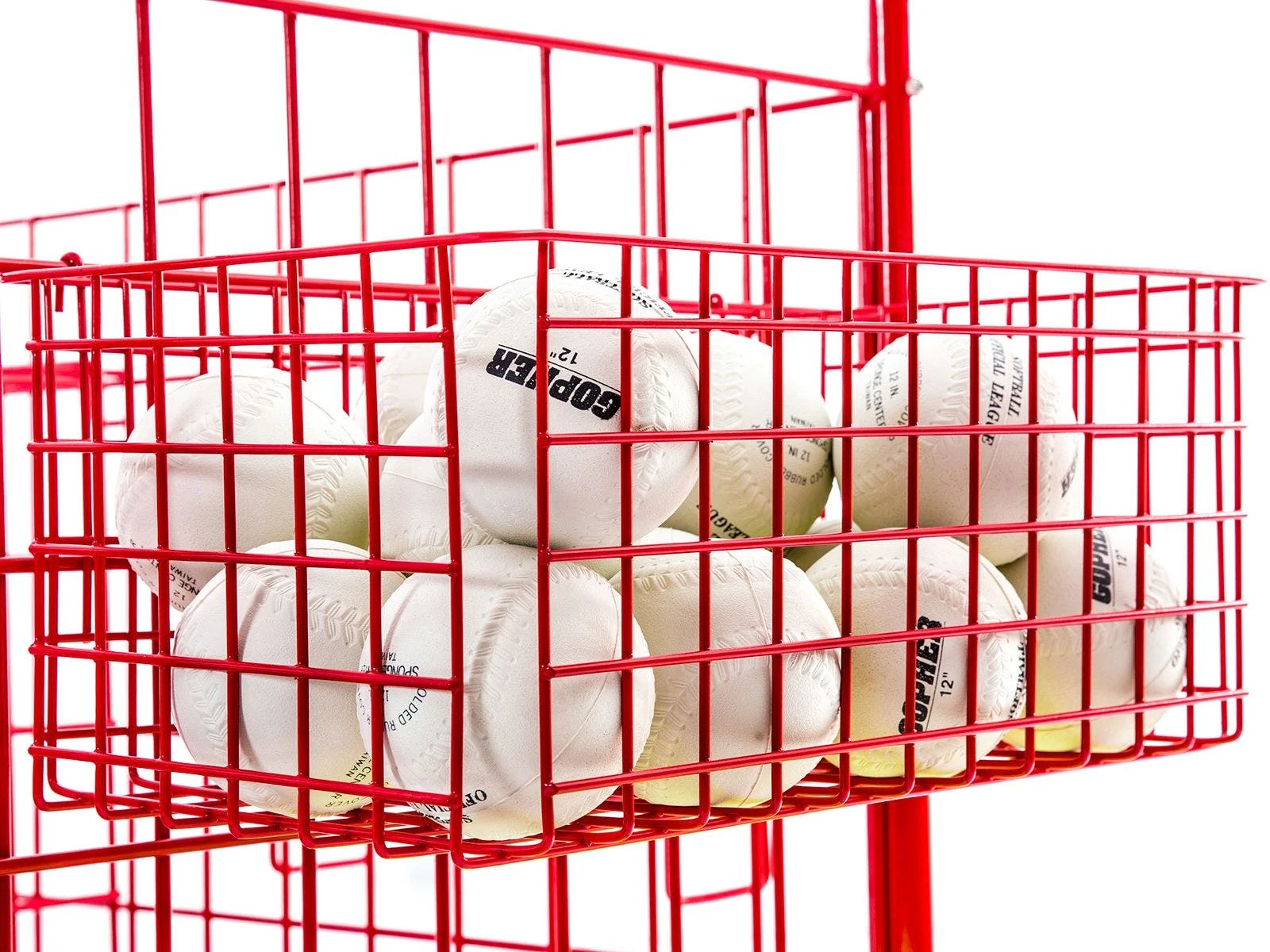 This baseball ball cart features big 12” dia all-terrain wheels to get your gear to the field and keep it organized. Its heavy-duty, 16-gauge tubular steel and 1/4” low-carbon steel wire is all powder-coated to protect against scratches, nicks, and rust.