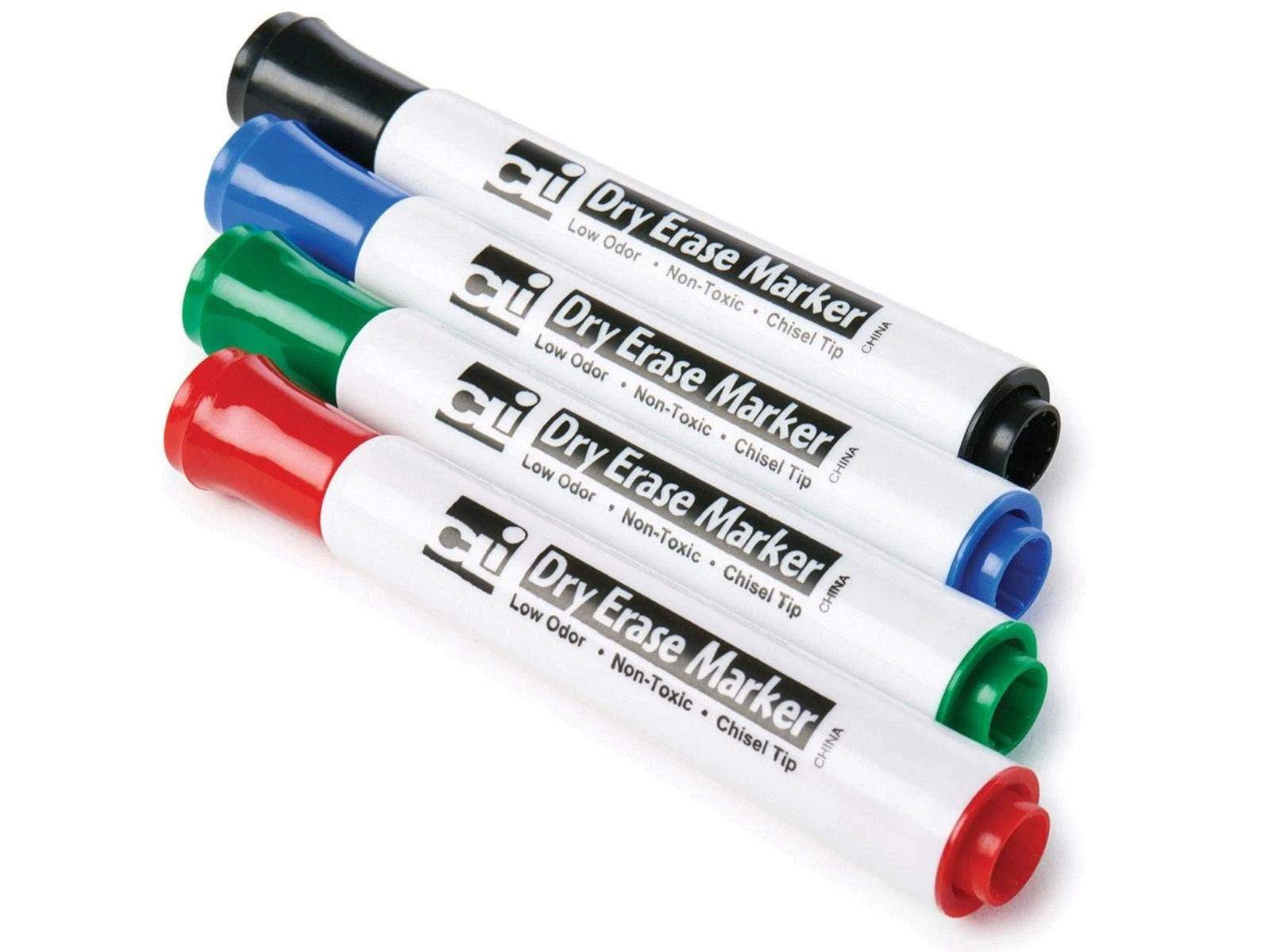 Four color options make it easy to write color-coded messages on dry-erase boards. These markers feature a low-odor formula, making them ideal for use in classrooms. Set of 4 includes 1 Ea black, blue, green, and red.